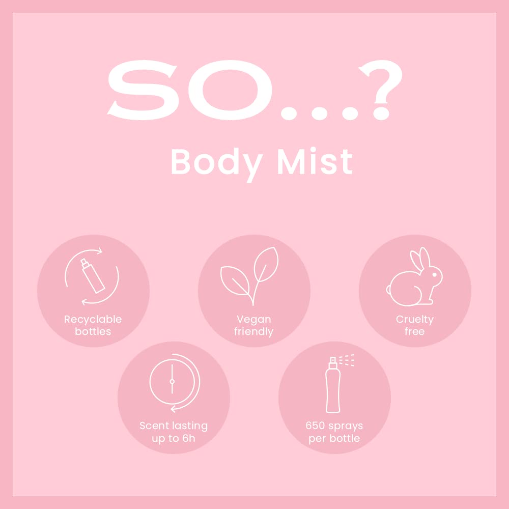 - BODY MIST BY SO...? - Looking for a deliciously fruity or a romantic floral body mist scent? Discover our collection of easy-to-wear Body Mists by So…? that range from our So...? Vanilla Body Mist to our fresh, fruity and floral body mist scents. Perfect for days when all you need is a quick fragrance refresh.