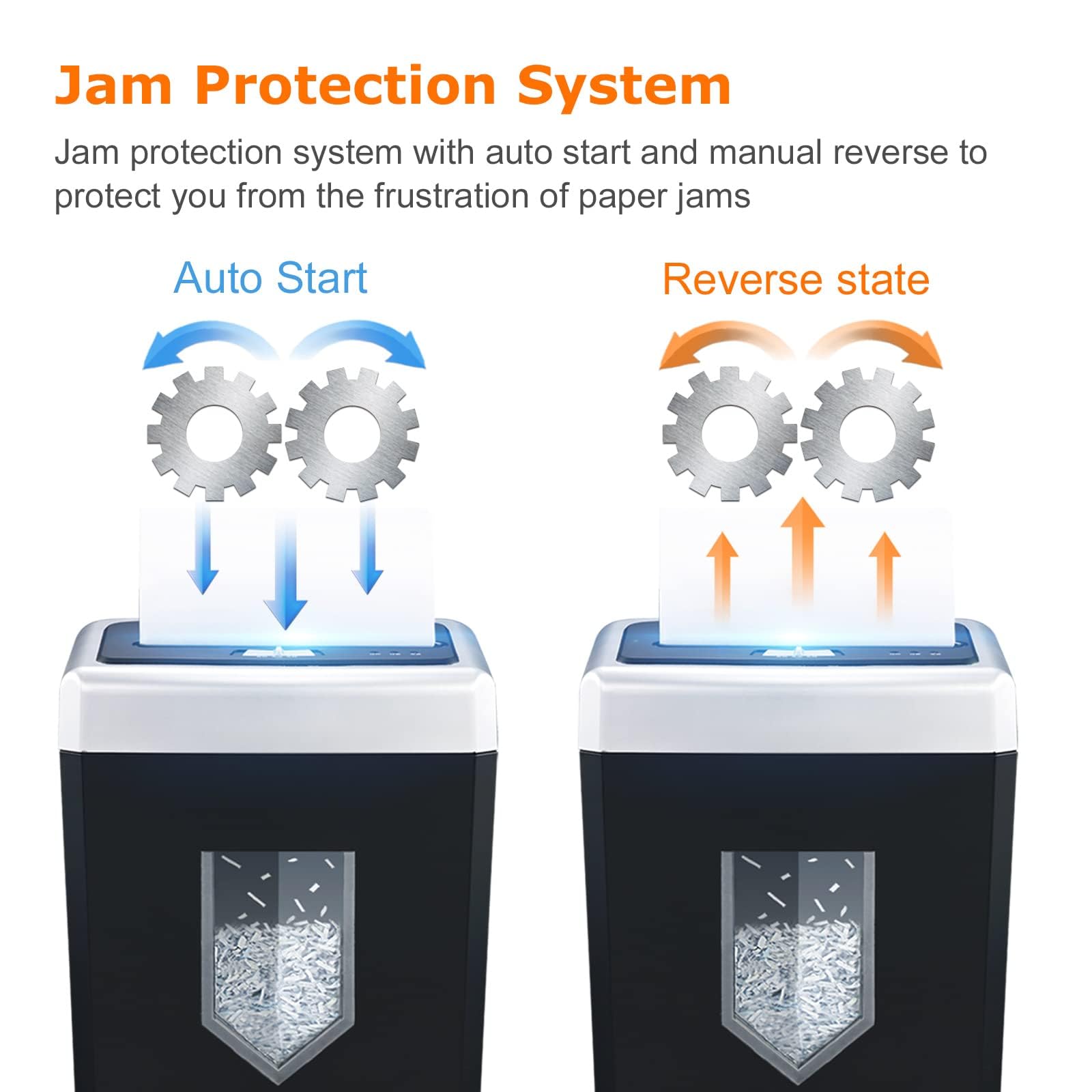 - [Paper Jam Clearing Function] Equipped with overheating and overloading protection, as well as auto start/stop and manual reverse functions, this shredder is designed to handle paper jams efficiently and ensure smooth operation