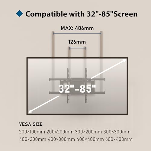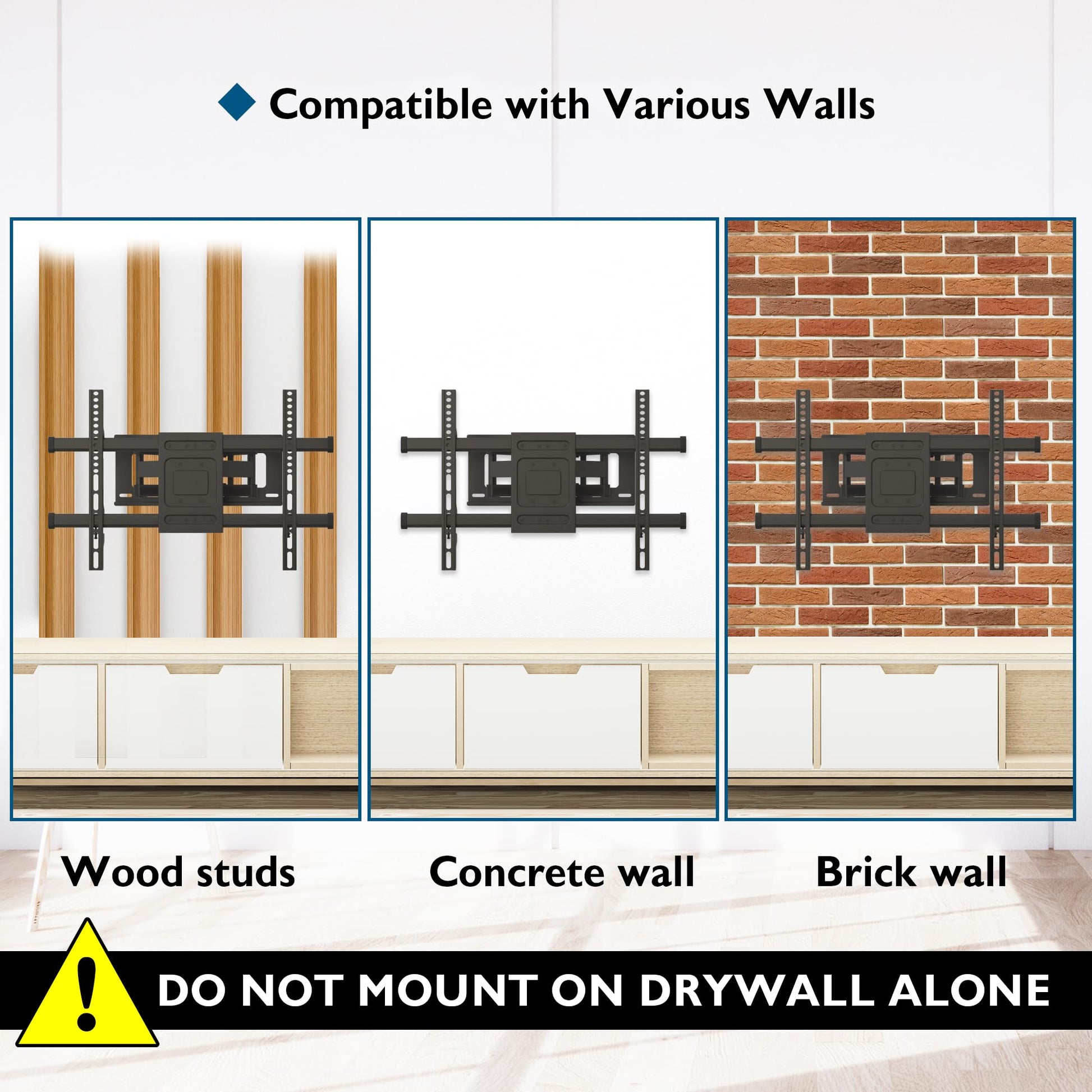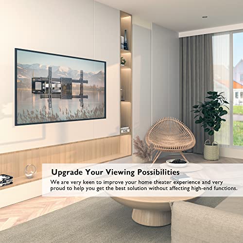 - Full Motion Adjustable & Stong Dual Arms - The arms of our TV wall bracket can swivel +/- 45° to the left and right (max swivel angle depends on TV size.), easily customizing your viewing experience. The arms of this large TV wall mount are made of high quality black coated cold rolled steel, making it extremely durable and anti-rust. It comes with two steel arms which can hold TVs weighting up to 60 kg. Safety locks ensure your TV is held securely.