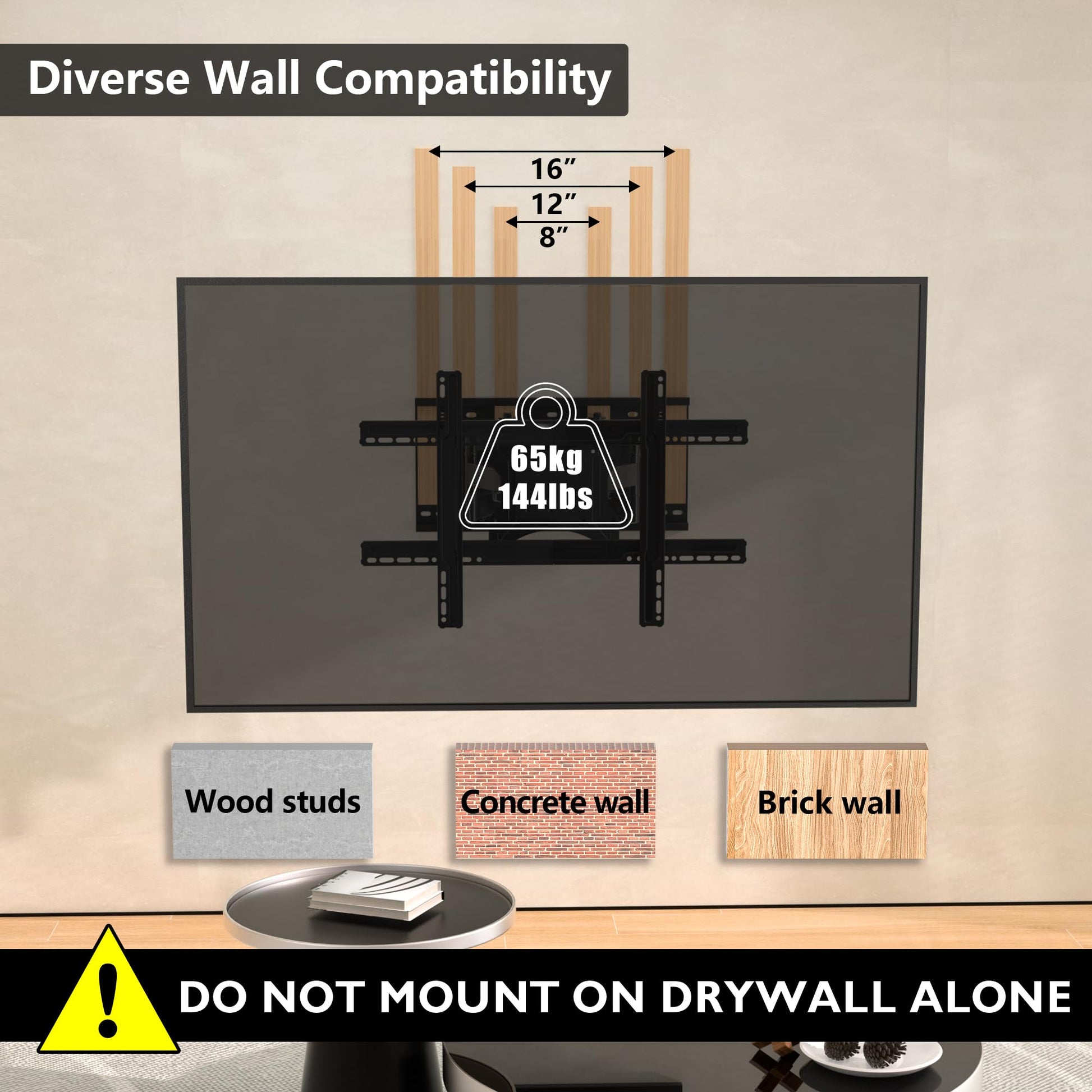 - ULTRA STRONG DOUBLE ARMS HOLD UP TO 65KG - Double arms are firmly welded with 24 welding joints to eliminate the risk of sagging in the installation of your TV (maximum load weight up to 65 kg). The TV bracket is manufactured to the highest standard using reinforced, compressed steel. It has a solid back panel with a thickness of 3.5mm to distribute the load so you know your television is safe and secure