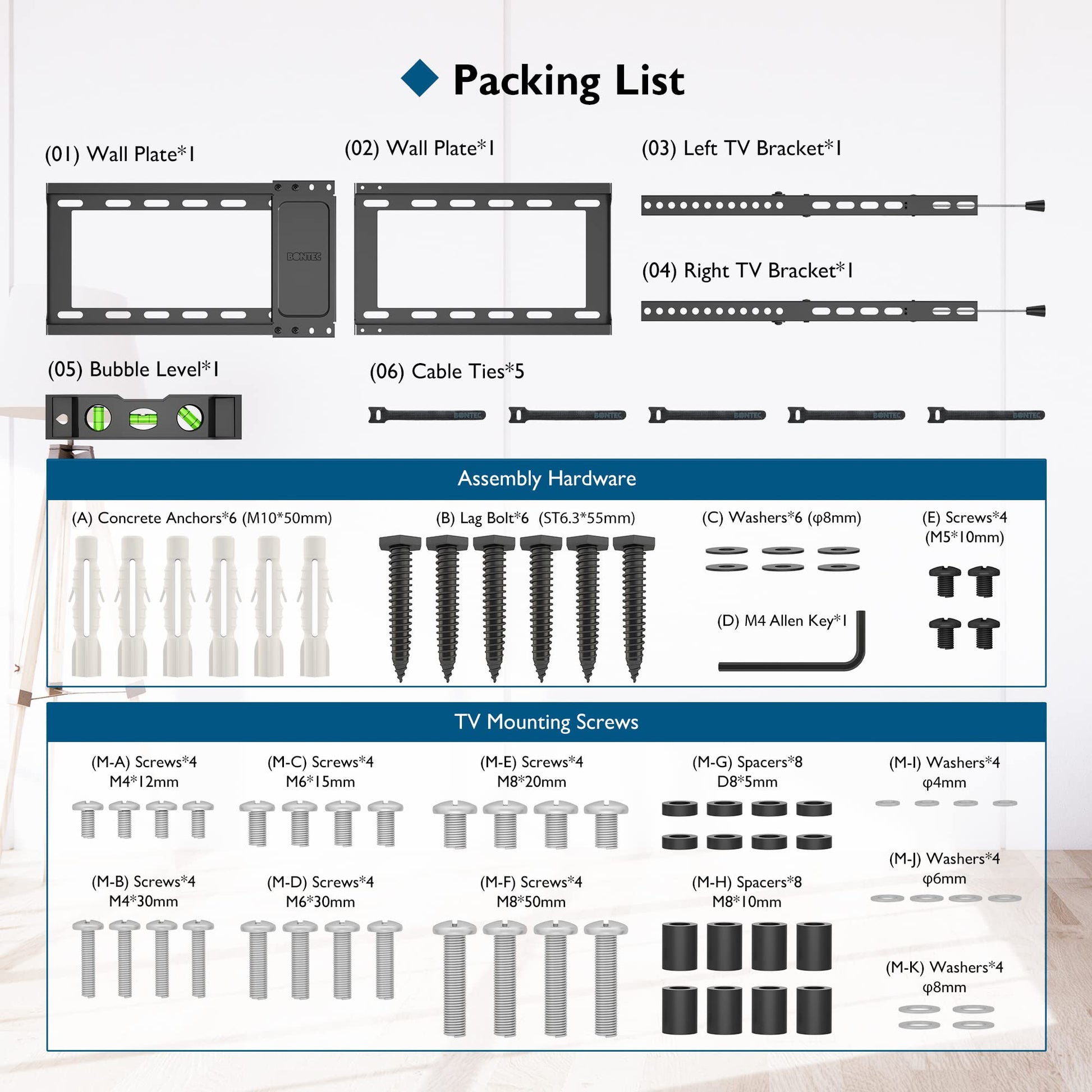- 【Super Quick Installation】 This 65 inch TV wall bracket has an automatic locking system to easily lock and quickly release your TV. The TV Wall Mount comes with 5 x cable ties, 1.8m HDMI cable, bubble level, easy-to-understand instructions and all the necessary product fixtures.