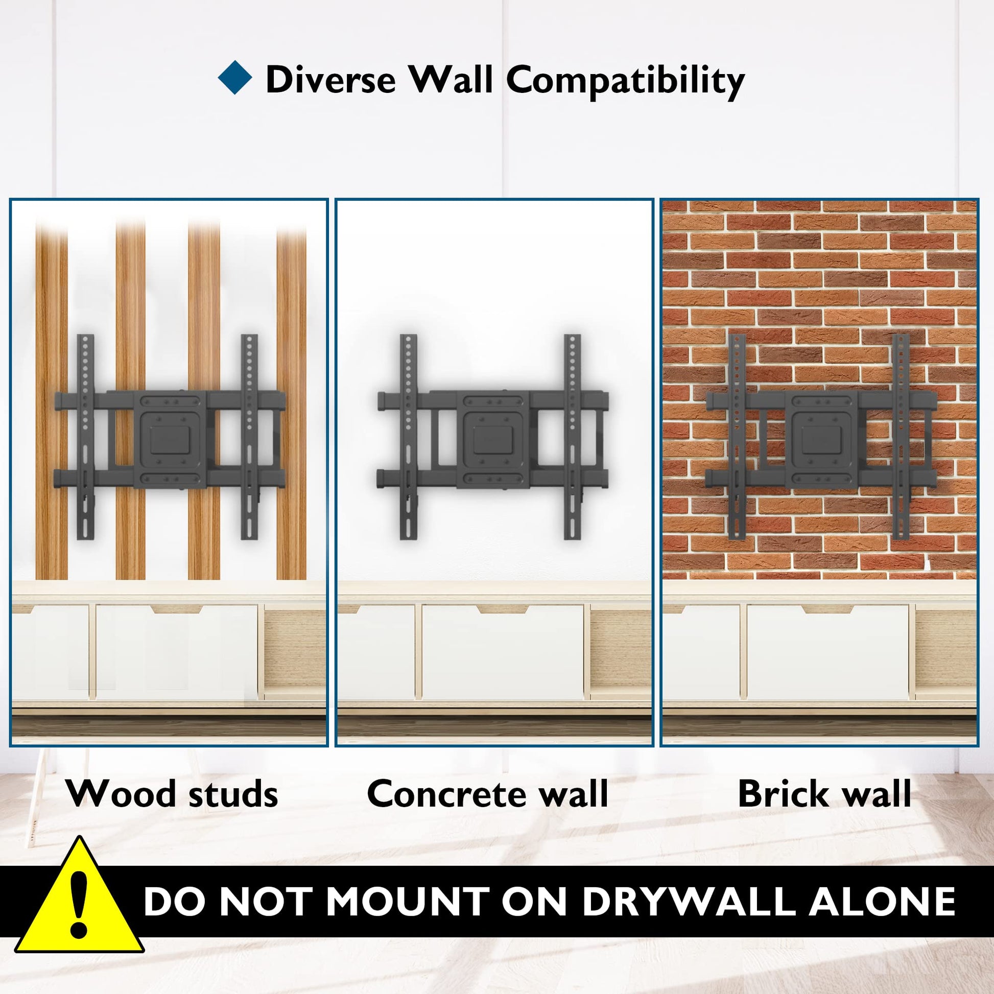 - Robust & Safe structure: This large-size TV wall mount is made of high quality thickened cold rolled steel, with max load capacity of 60kg, do not need to worry about the screen coming off the wall. (Warn: Please do not install the TV bracket on plasterboard)