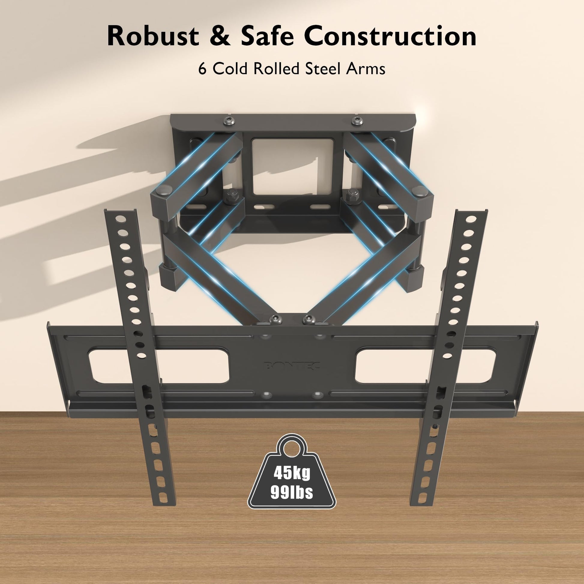 - 【Robust & Safe Construction】 - This large size TV wall mount is made with cold rolled steel, has 2 steel arms and can support TVs weighing up to 45kg, giving you peace of mind. This TV wall bracket is not suitable for plasterboard walls