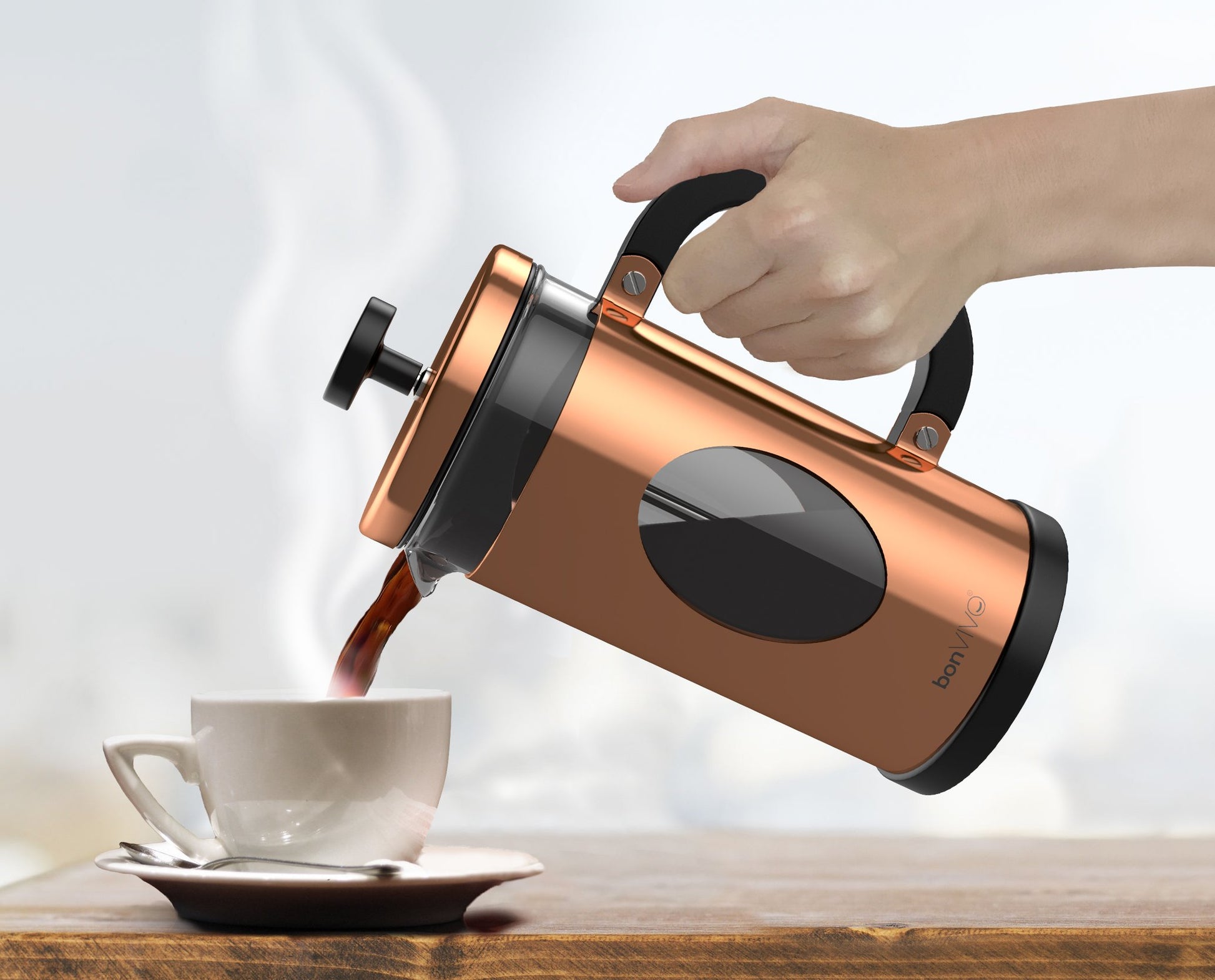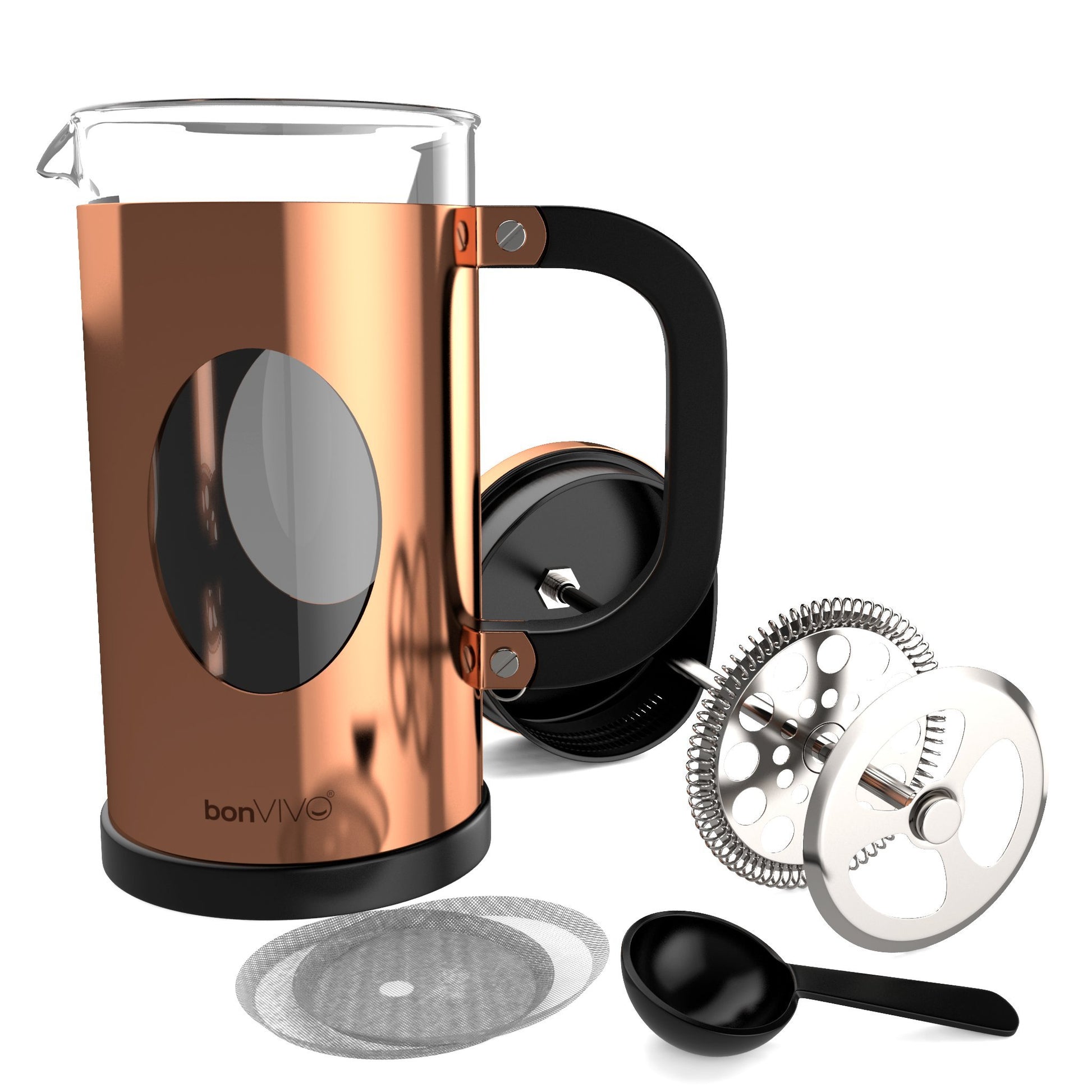 bonVIVO Cafetiere - GAZETARO I 350ml, 8 Cup, Stainless Steel French Press Coffee Maker w/Bonus Scoop and Replacement Filter Mesh - Heat-Resistant Coffee Press - Gifts for Women and Men Copper