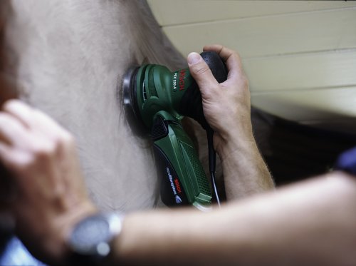 The secret of the Bosch Random Orbit Sander is its distinct combination of rotary and orbital actions. This ensures ideal and scratch-free quality sanding on a variety of woods and metals--it’s also suitable for sanding down paintwork. With the appropriate Velcro-backed polishing pads you can even polish your car with this sander.