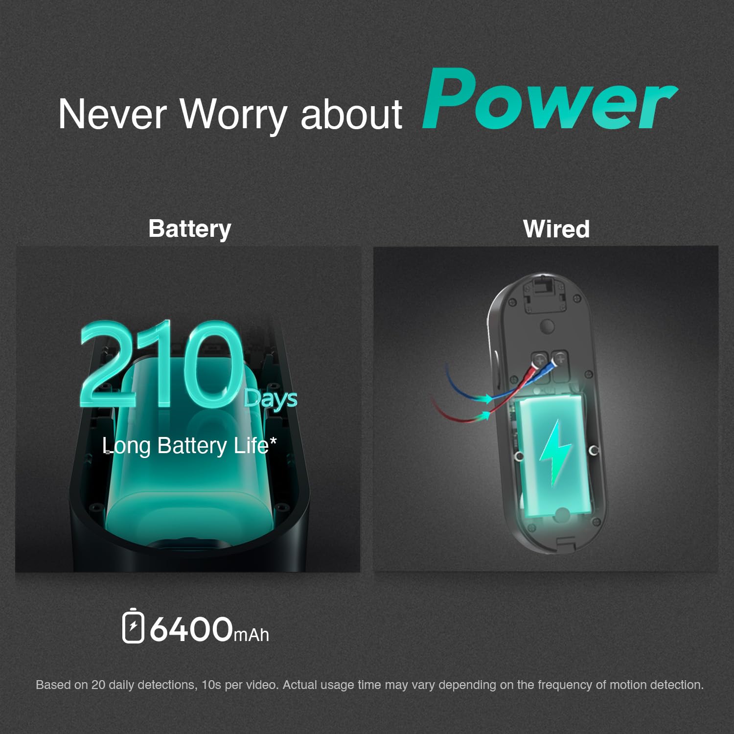 - ✨【6400mAh 210 Days Battery Life】Botslab wireless doorbell camera has a built-in 6400 mAh rechargeable battery (can be battery life 210 days), which can also be used to power the video doorbell through wired power supply. IP66 waterproof, 2.4GHz/5GHz Wi-Fi support, works with Alexa and Google Assistant.