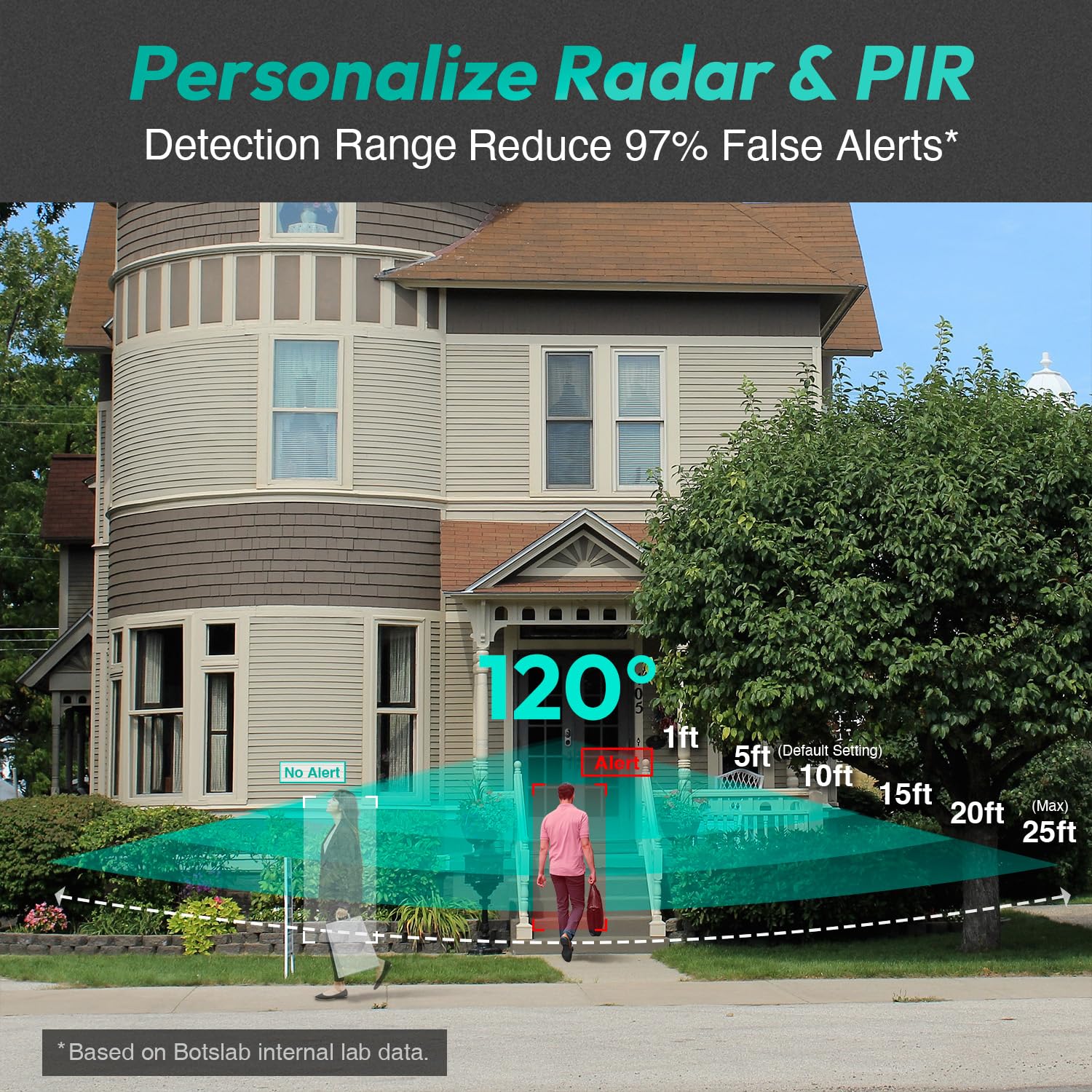 - 🤖【AI Detection Precise Alerts】Benefit from AI detection for accurate alerts, including human detection, stay detection, and visitor recognition. The combination of radar and PIR detection minimizes false alerts. The voice changing function can protect your privacy.