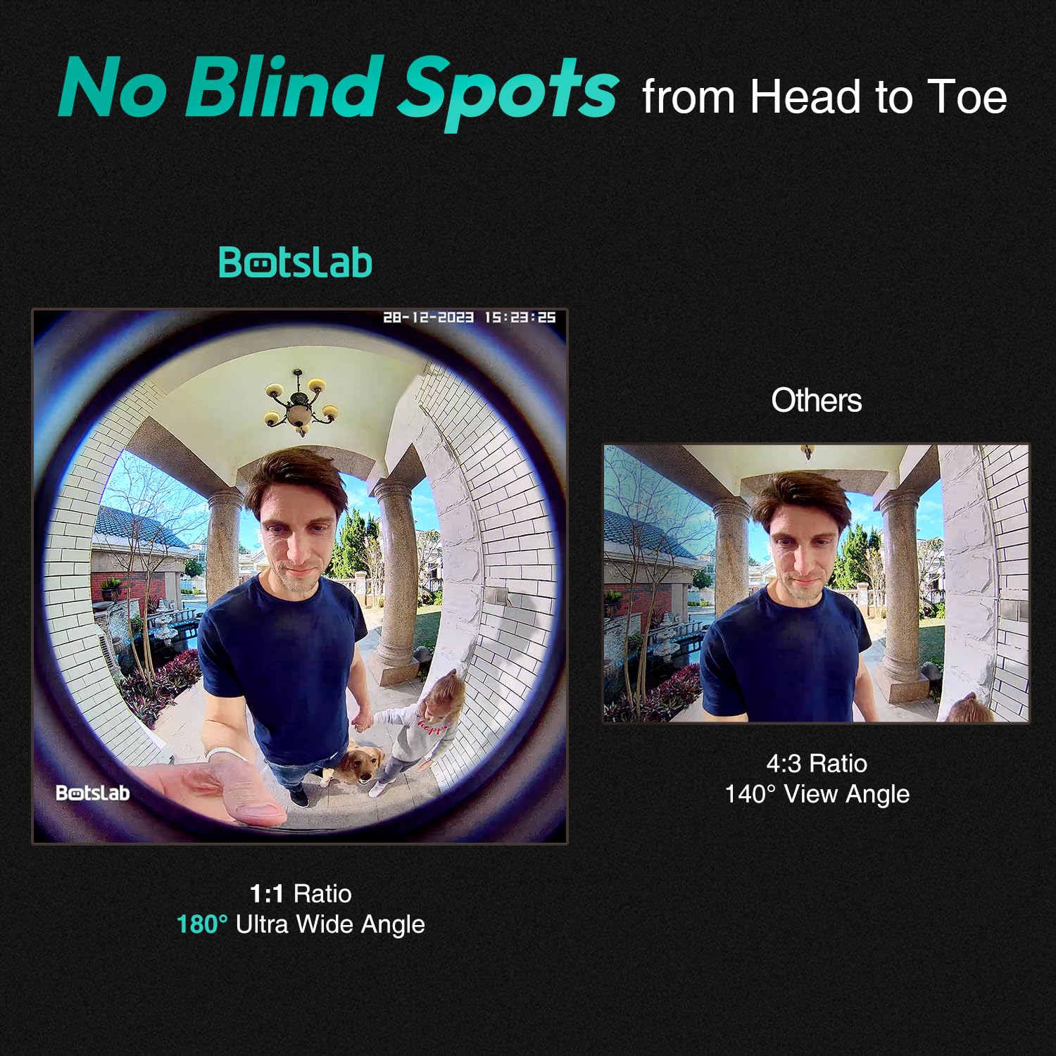 - ✅【1:1 Head-to-Toe with 180° View】Fisheyes lens can achieve an image ratio 1:1. When you talk to the courier outside the door, you can see express on the floor through the doorbell camera wireless, even you can see what the courier is wearing that day. This is entirely due to the fisheyes lens of Botslab video doorbell.