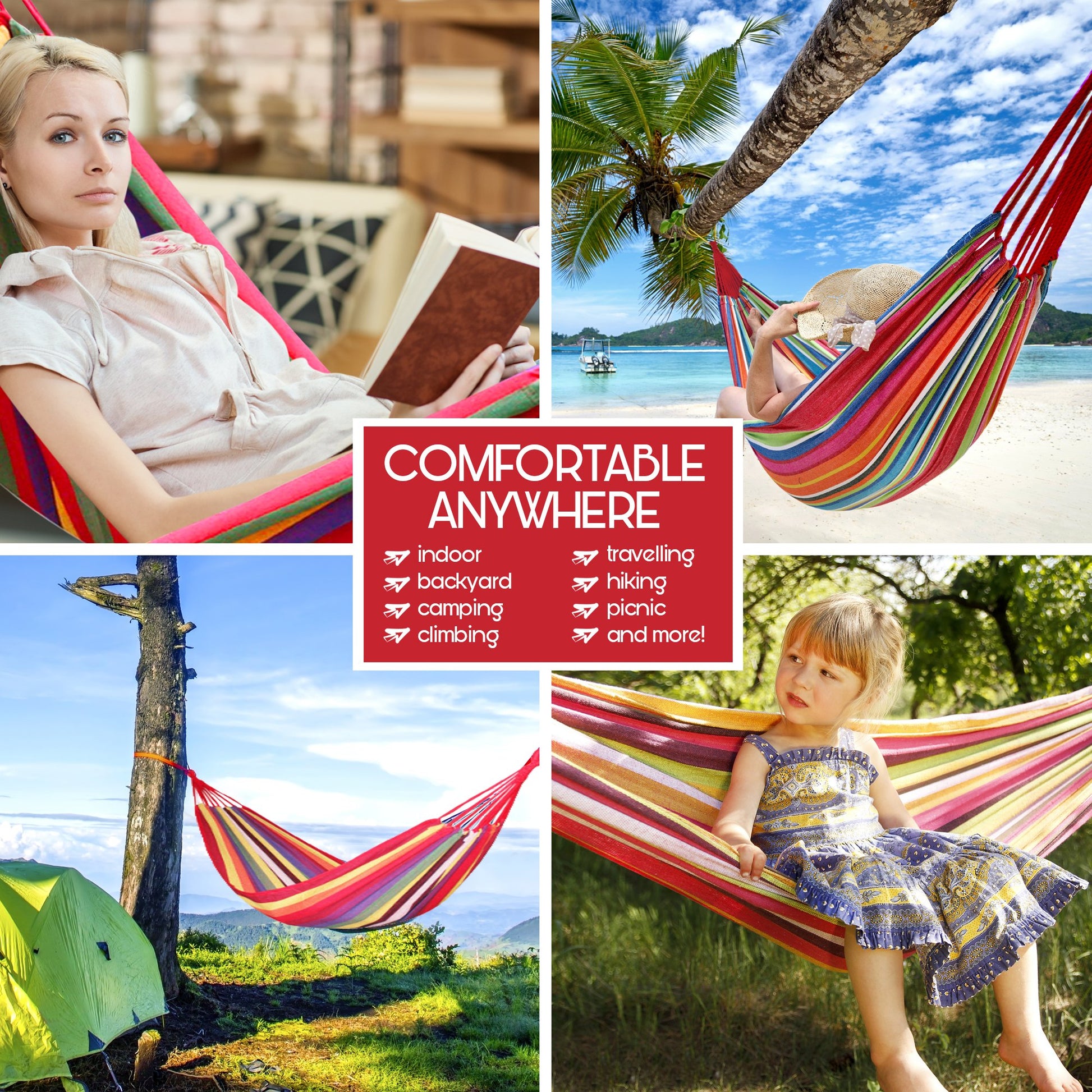 - Share a cozy moment with a loved one in this 2 person hammock, designed for maximum relaxation