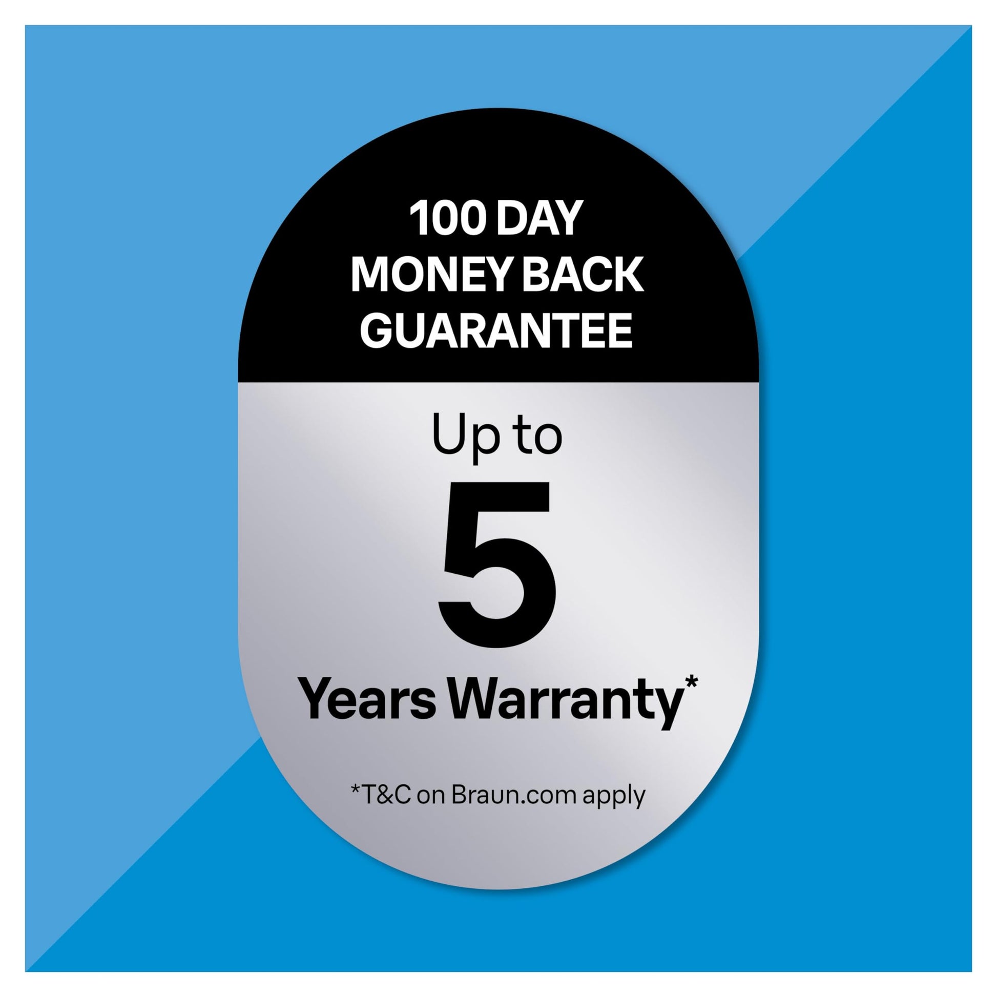 If you don’t think your Braun product has delivered superior results, get your money back with Braun’s 100-day money back guarantee offer.