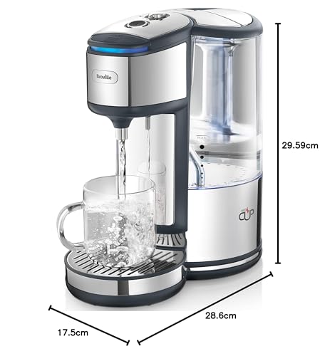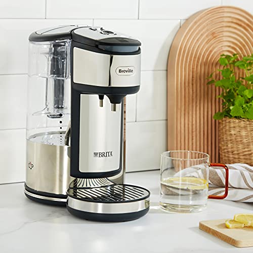Breville BRITA HotCup Hot Water Dispenser, Integrated Water Filter, 1.8L with 3kW Fast Boil & Variable Dispense, Energy-efficient use, Stainless Steel [VKJ367], Silver/Black