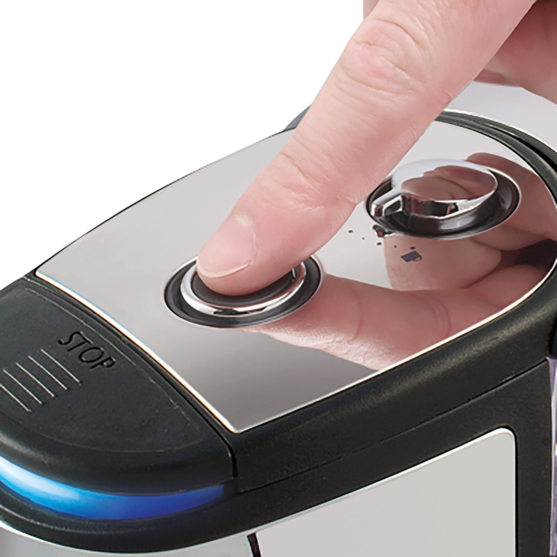 - Large water window with blue illumination in boil mode; polished stainless steel design complements modern kitchens
