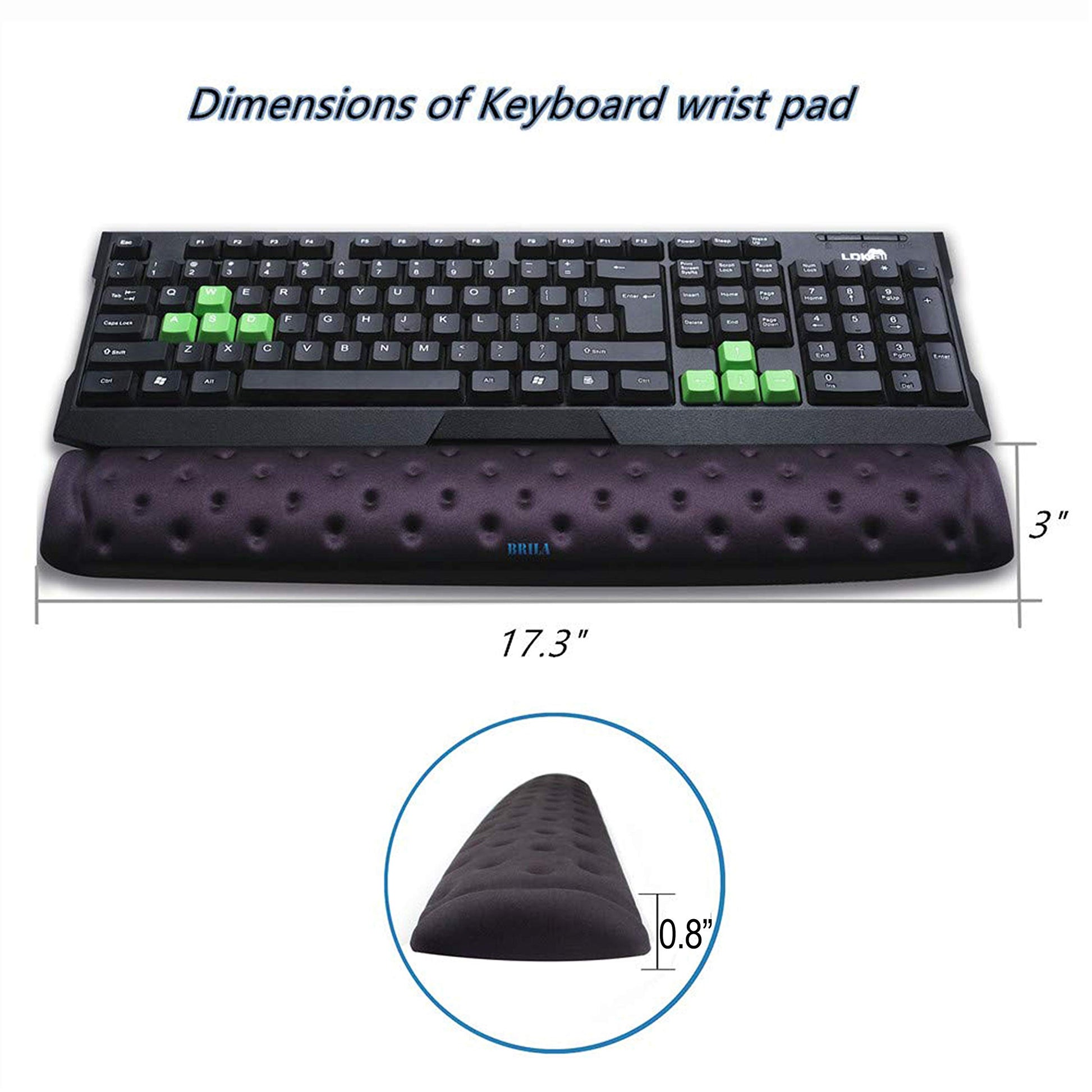 - NON-SLIP SUPPORTSkid-proof rubbery PU bottom, offers steady support no matter how fast you can type; Measuring: Keyboard wrist rest: long 17.3" x W 3" x H 0.8" Mouse wrist rest: L 4.7" x W 2.8" x 0.8", suitable for all sizes of keyboards;