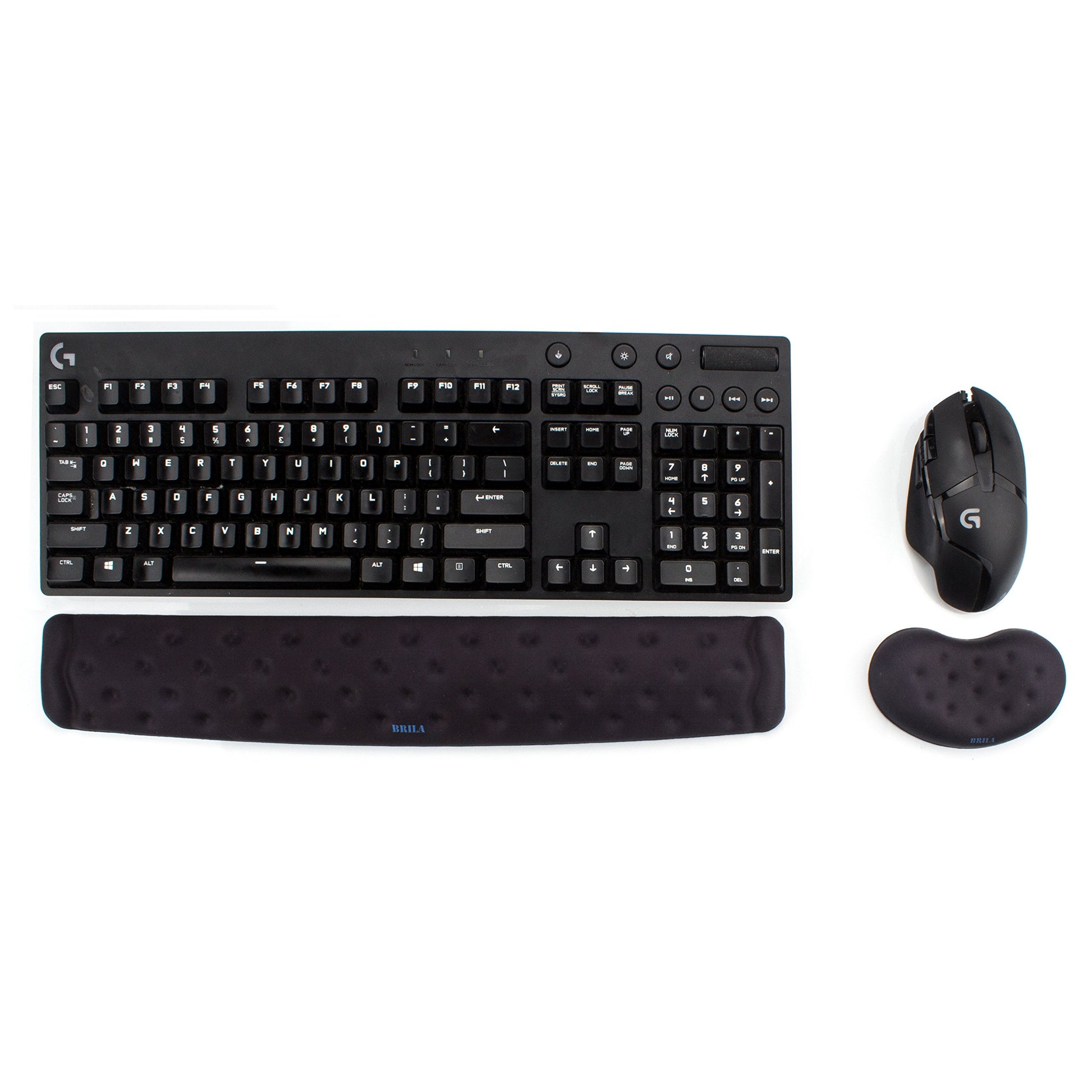 BRILA Memory Foam Mouse & Keyboard Wrist Rest Support Pad Cushion Set for Computer, Laptop, Office Work, PC Gaming - Massage Holes Design (Black Bundle)