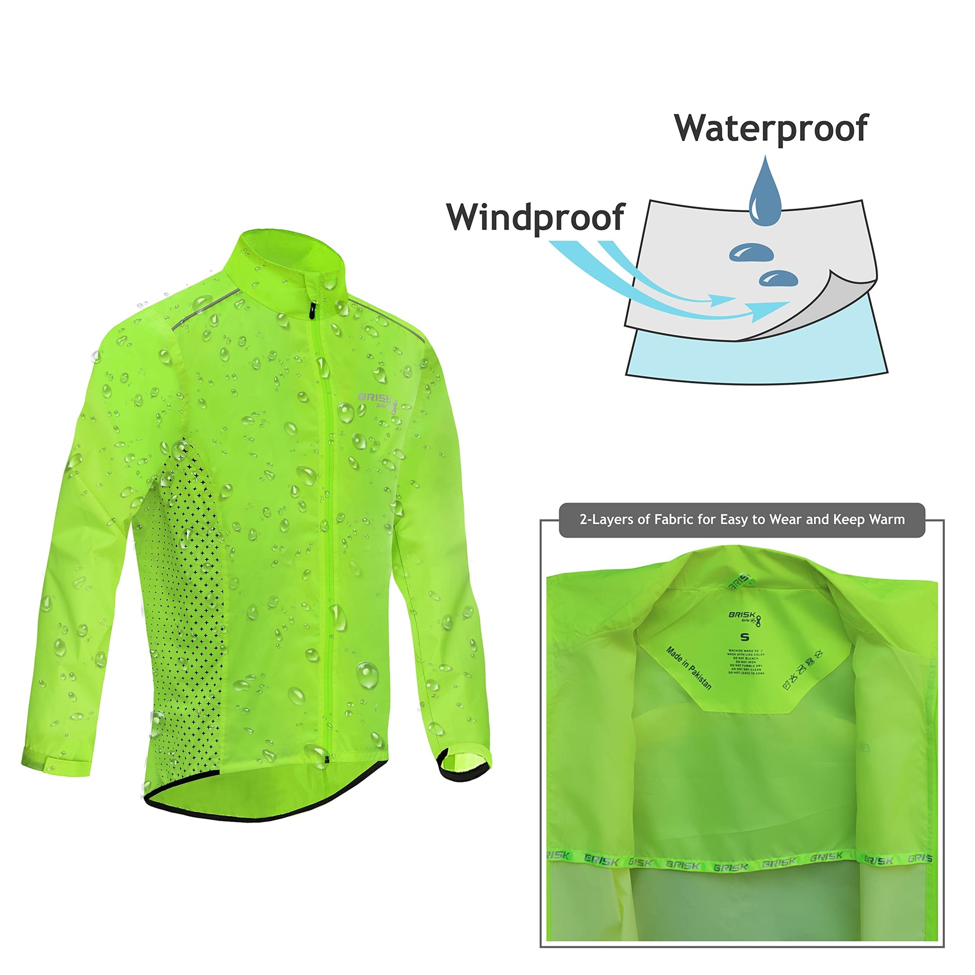 Details: Brisk Bike Cycling jacket waterproof outer shell cycling jacket when riding or commuting during low light conditions and at night The waterproof fabric will keep the rider dry over moderate distances.