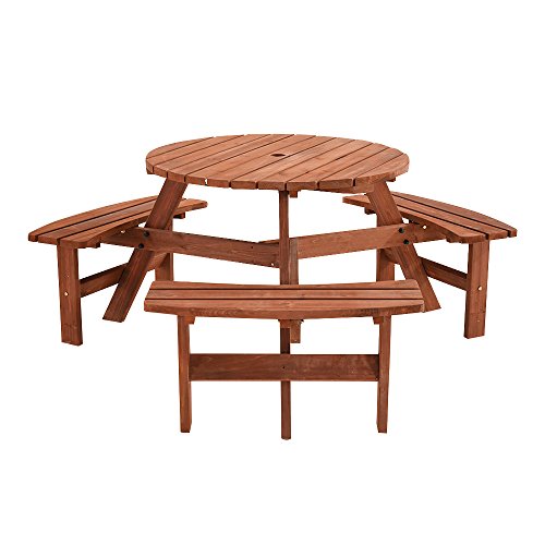 Britoniture 6 Seater Wooden Round Picnic Table and Bench for Garden Pub Patio