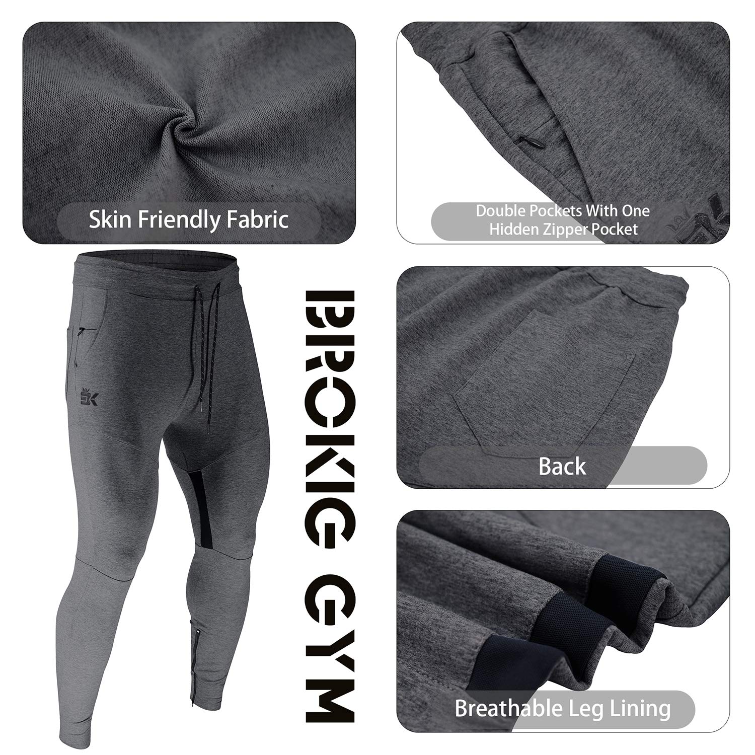 BROKIG Mens Thigh Mesh Gym Joggers Trousers Running Slim Fit Tracksuit Bottoms Sweatpants Men Zip Pockets (S, Dark Grey)