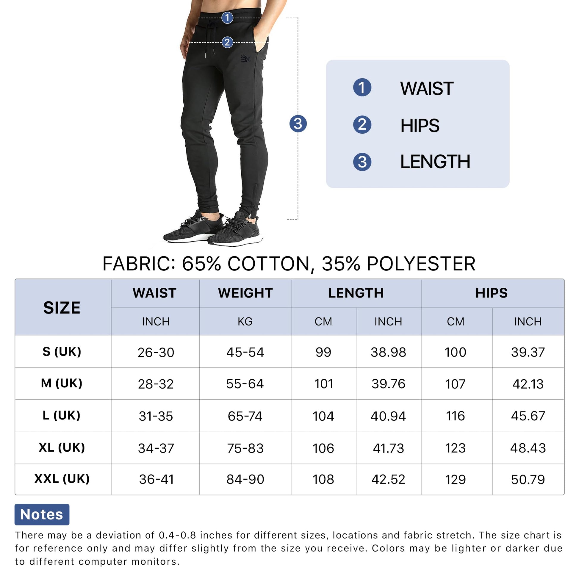 - Slim fit design mens gym trousers, if you prefer loose, please go up a size.