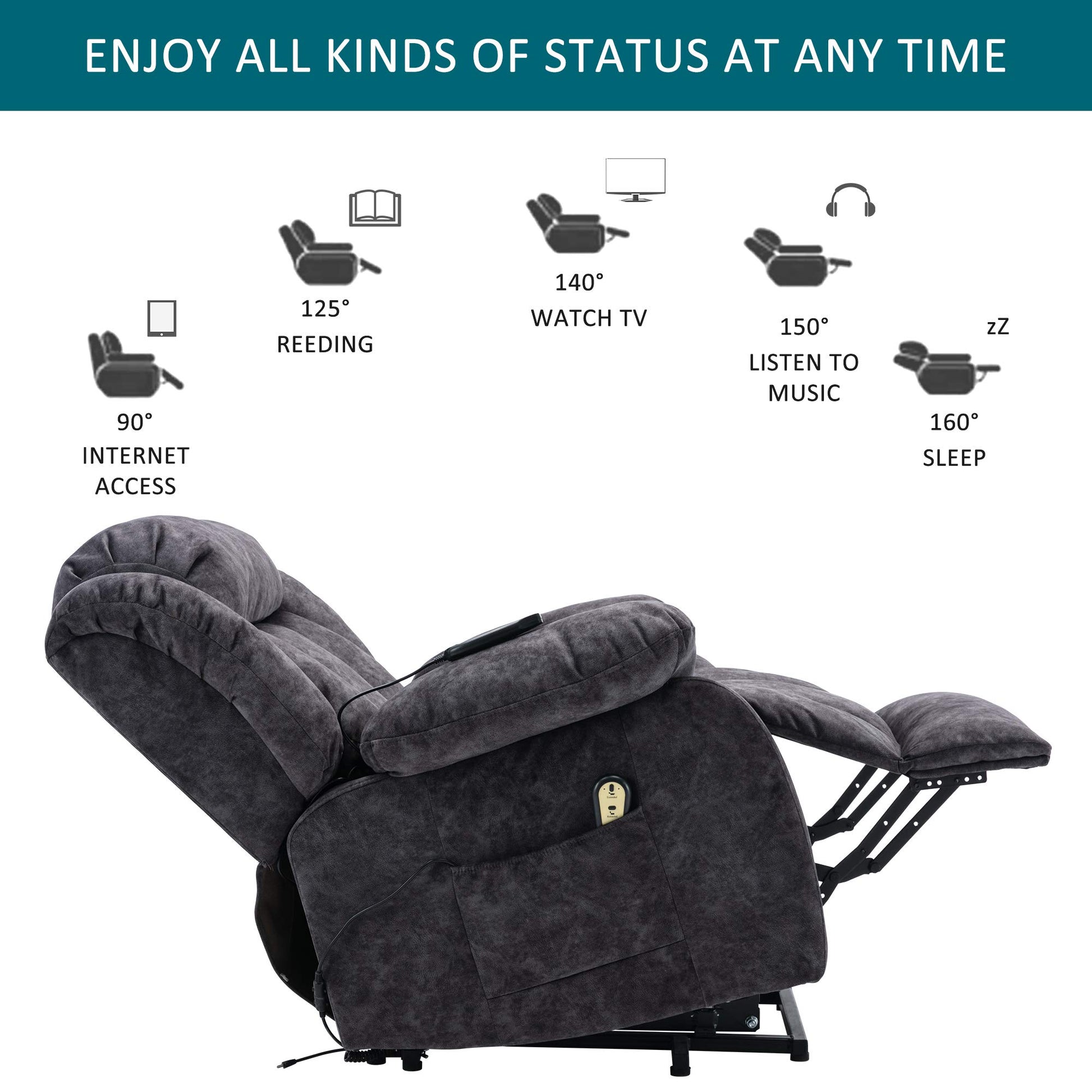 - 【Massage and Heating】The electric lift chairs with four points massage (back, lumbar, thigh, leg) with five adjustable modes and two intensity options, offers you a full body massage at your own home. Backrest with lumbar heating function, will give extra comfort and helping to improve chronic lumbar diseases. There is a timer function in 15/30/60 minutes which is convenient for you to set massaging time