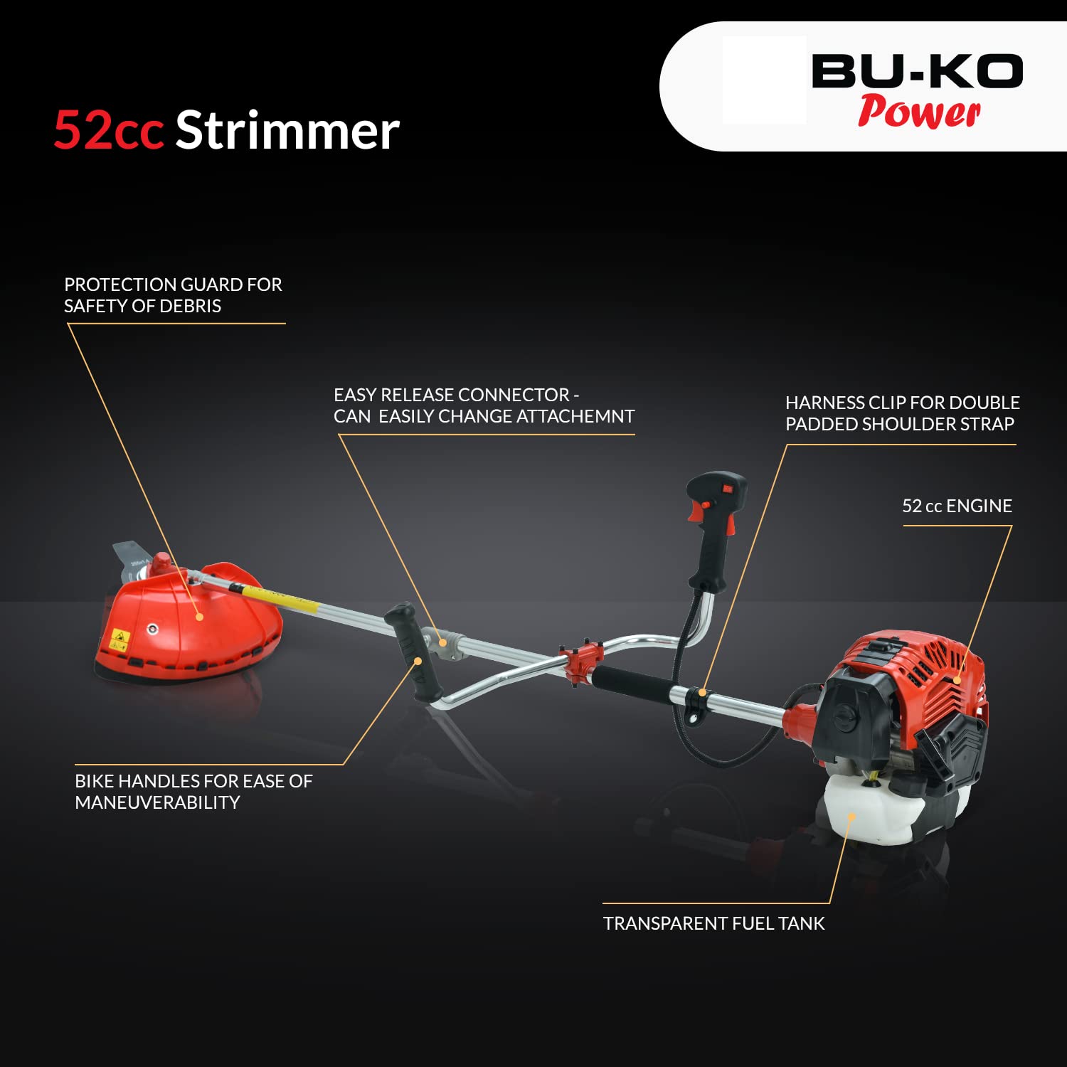 - ✅ BU-KO - 52cc 3 in 1 Multi-Tool, Easy To Assemble, lightweight High Performance, Heavy Duty Powerful 3HP, Use 2 Stroke Oil, Mix 25/1 to keep the Engine Lubricated, Vertical Single- Cylinder; Power Supply: 2.2 Kw to 7500 rpm, CE & EMC Approved