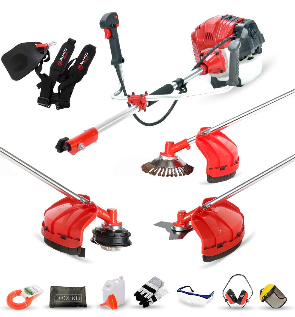 BU-KO 52cc Petrol Strimmer Garden Tool Including: String Trimmer, Brush Cutter with 3T Blade, Steel Wire Strummer Weed Brush Cutting Blade. Great Outdoor Power tool 1 Year Warranty