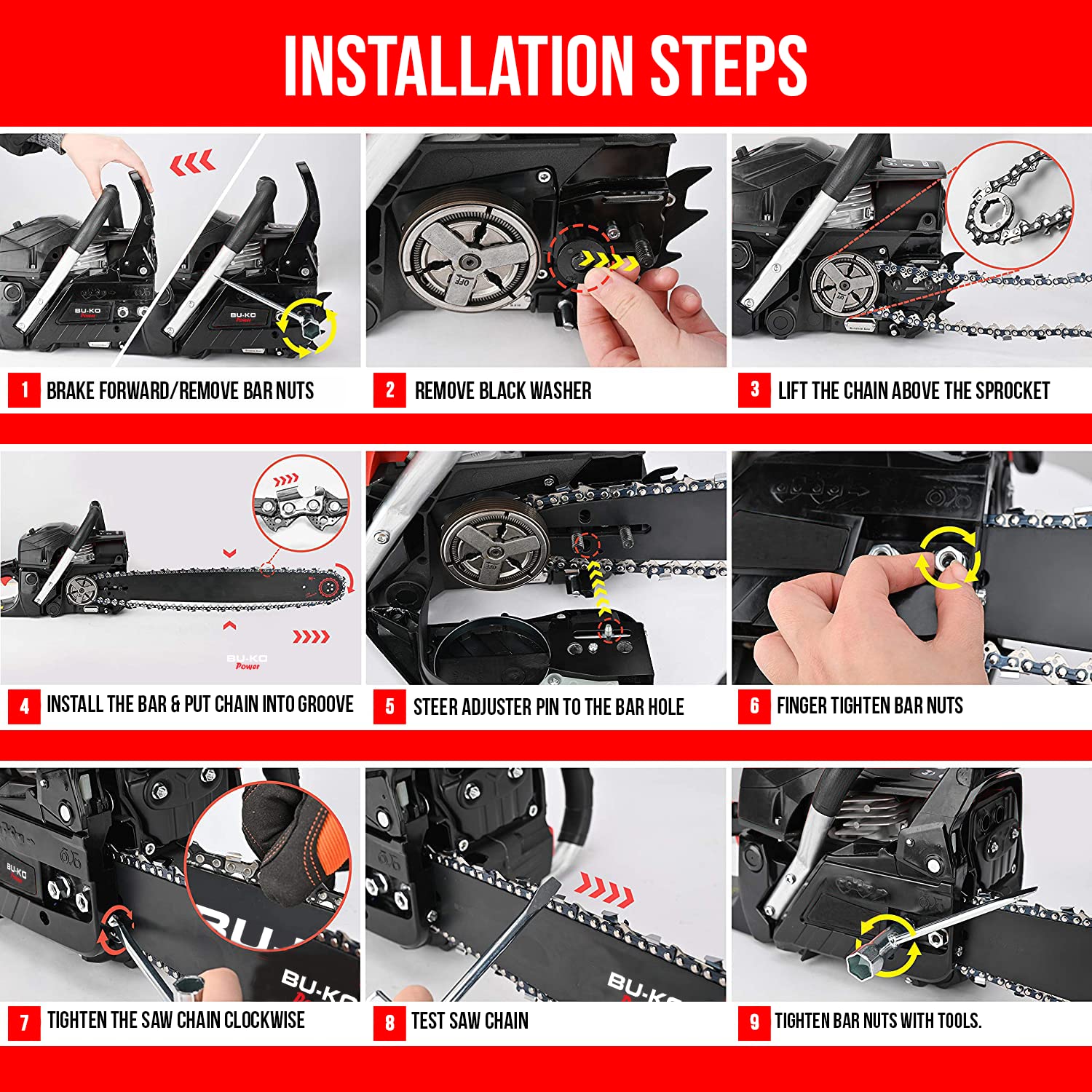 - ✅【EASY TO USE WITH LESS VIBRATION】The ergonomic design makes this chainsaw balanced, agile and comfortable to use. Use the low kick back chain for smooth and fast cutting through wet and dry wood. The vibration handles at the front and rear ensure comfortable operation.