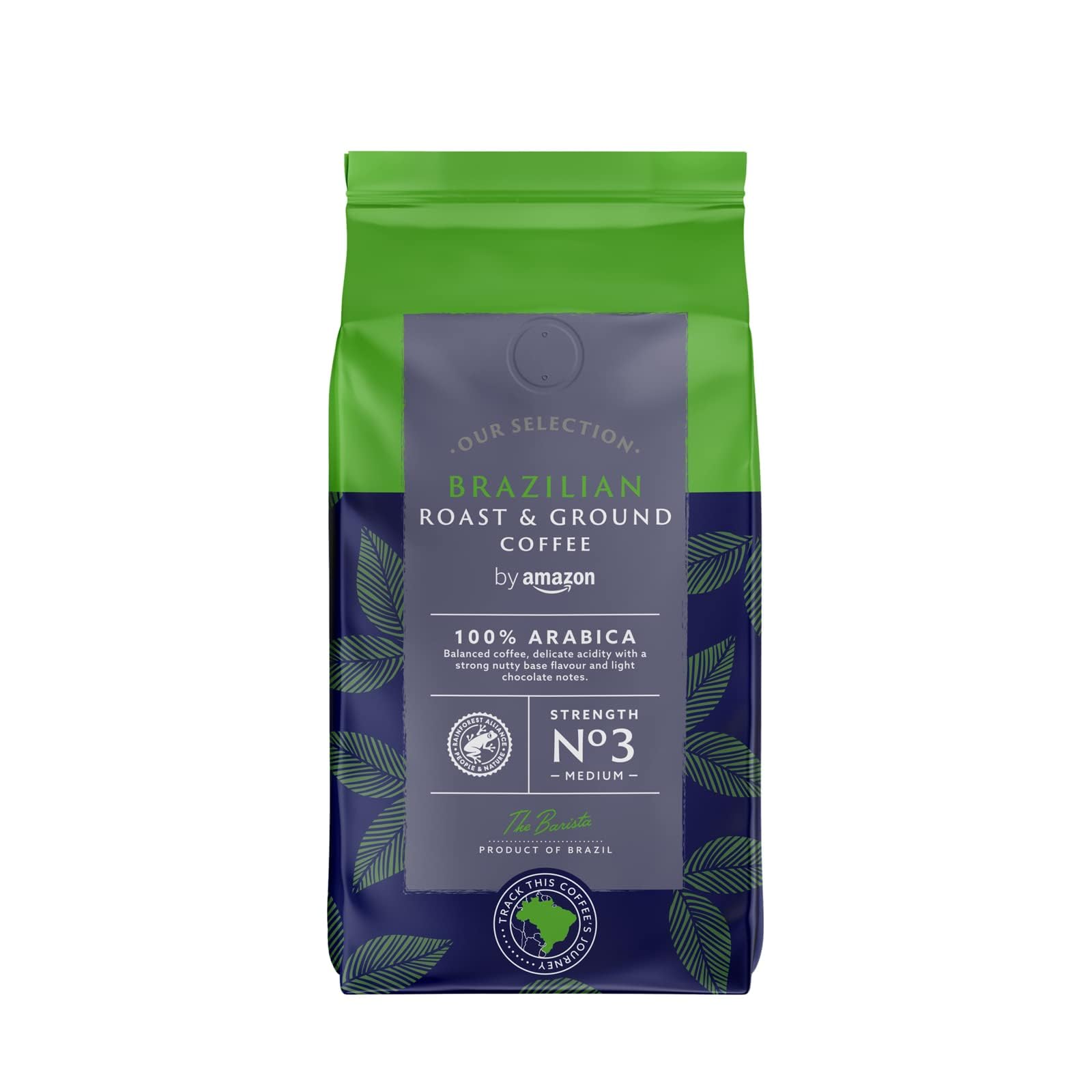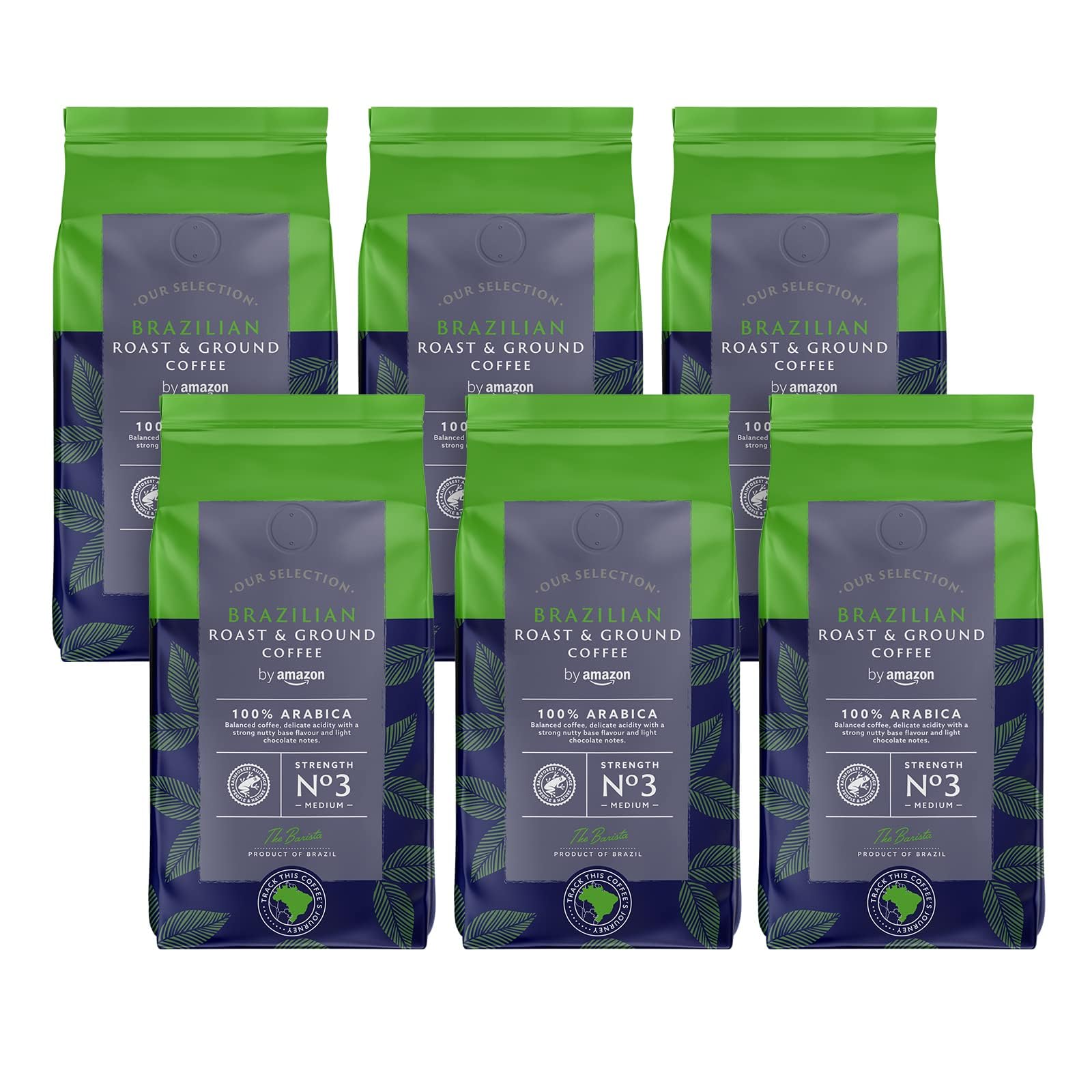 by Amazon Brazilian Roast and Ground Coffee, Medium Roast, 1.36Kg (6 Packs of 227g), Rainforest Alliance Certified