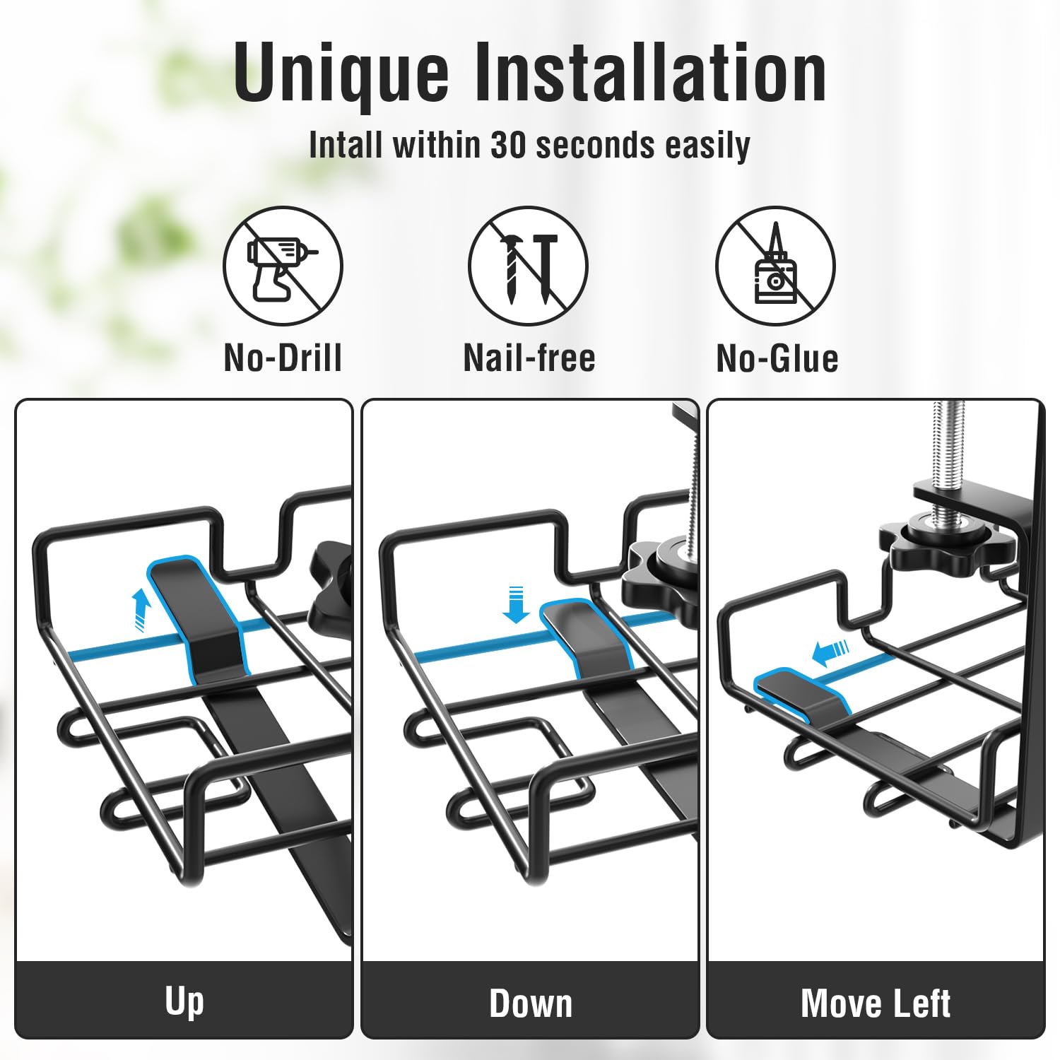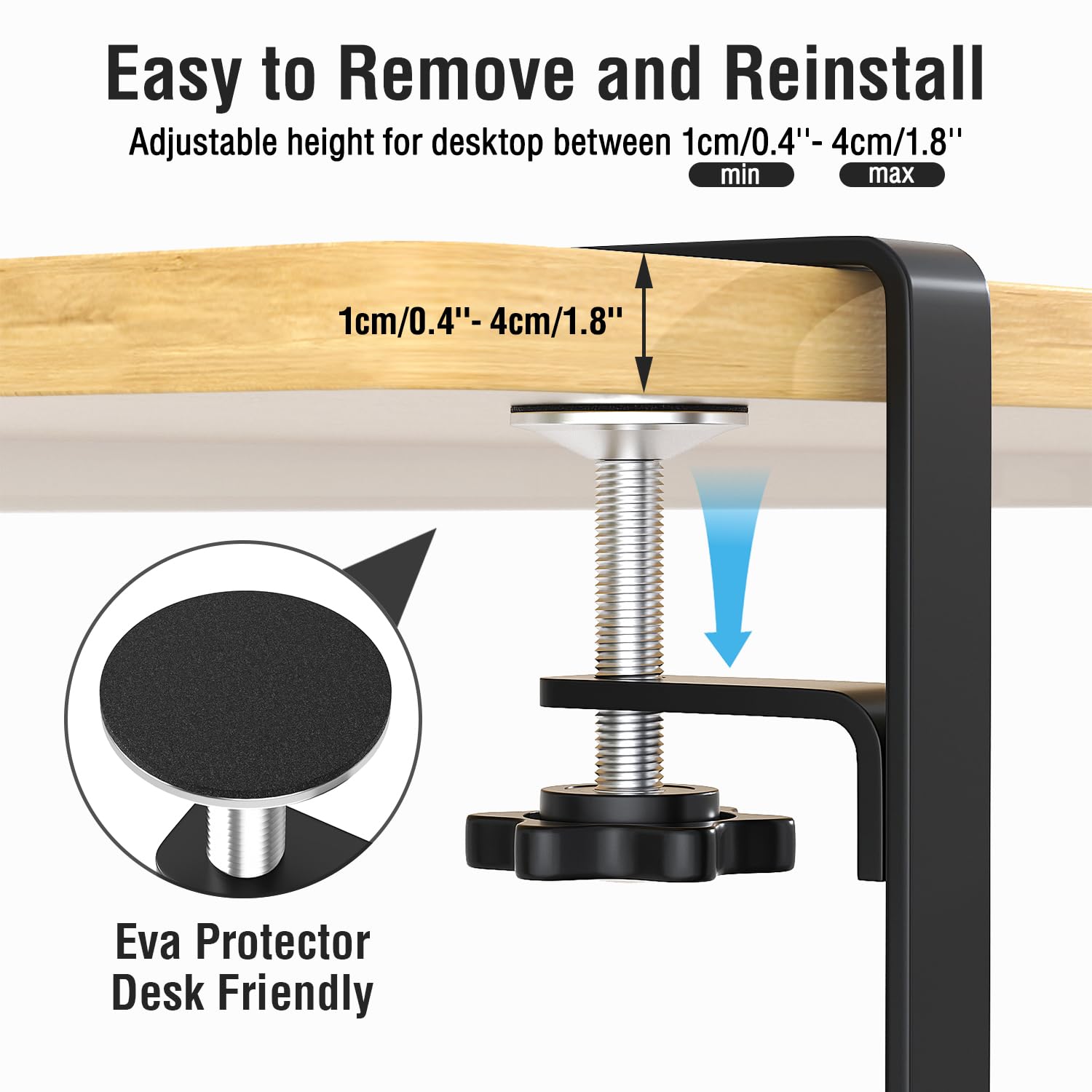 - No-Drilling:Clamp mount design,adjustable for desks that thickness are between 0.4-1.6inch. With non-slip rubber pads cover over the clamps, it can protect your desk from scratches. Super easy to remove and reinstall.