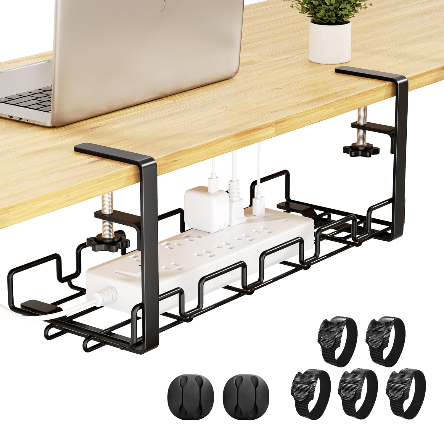 - With Cable Clips & Strips: You will receive a cable tray with two clamps, 2 cable clips (with strong adhesive) and 5 cable ties, helping you better save space and no more hanging or tangled wires. Say goodbye to the messy cable under your desk in office or home.