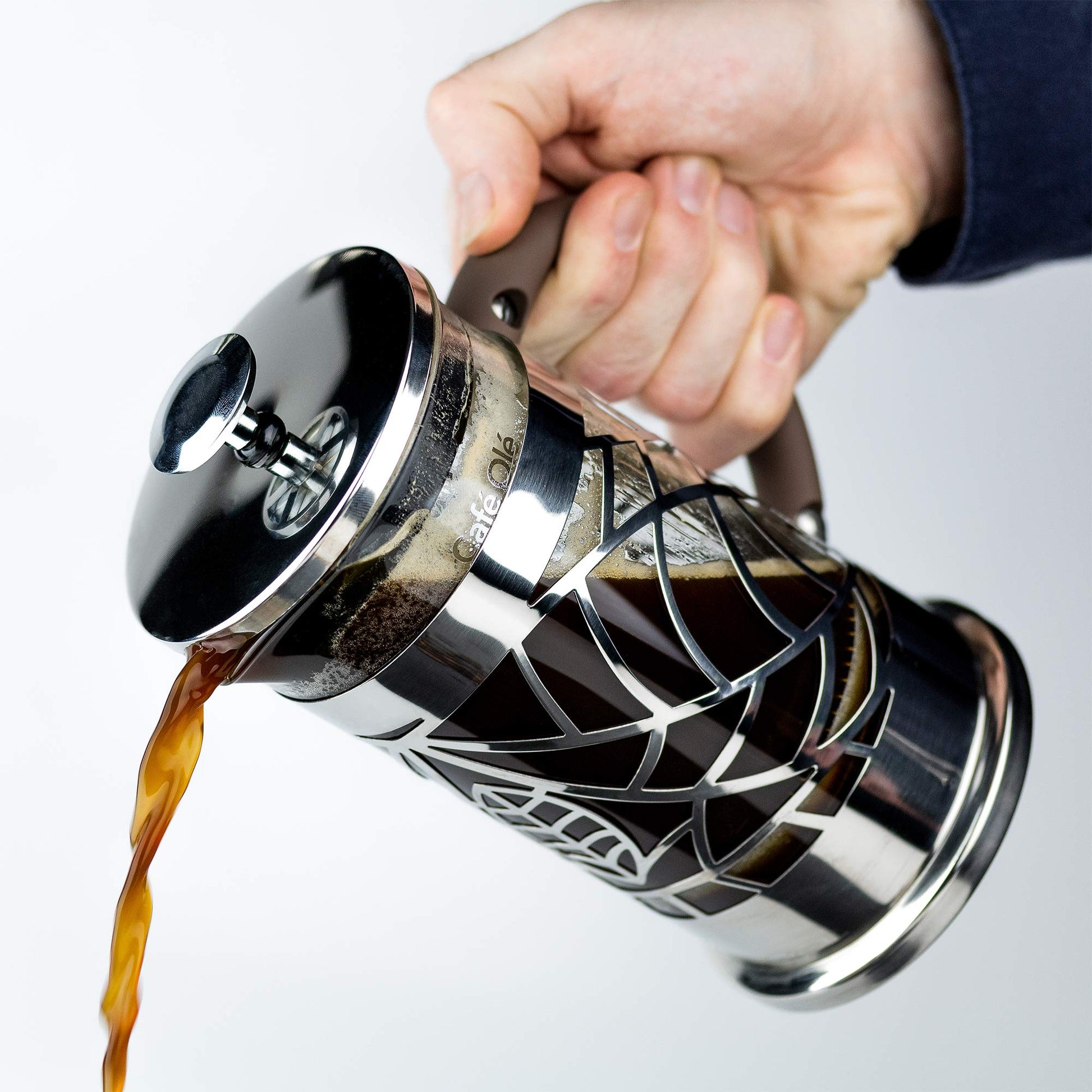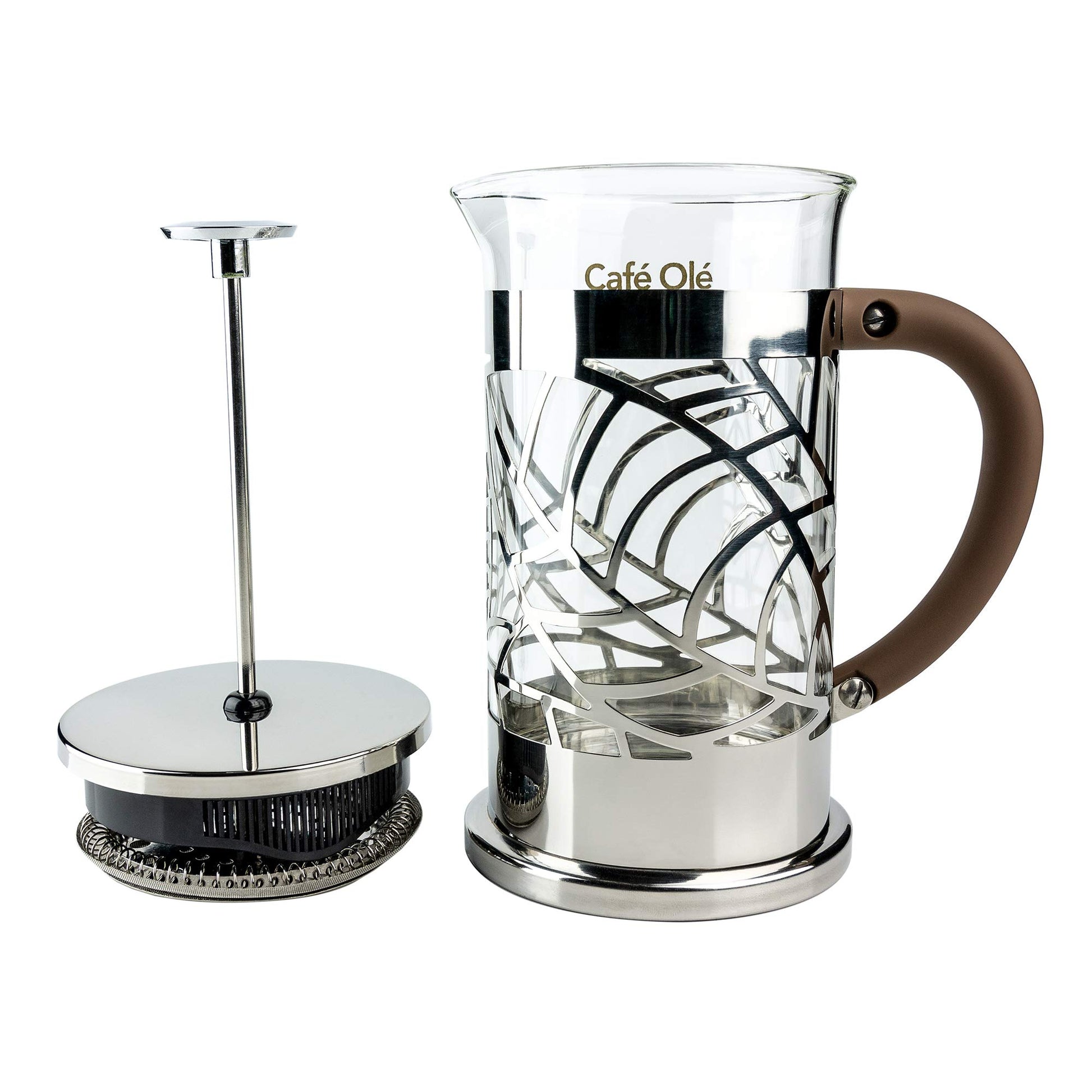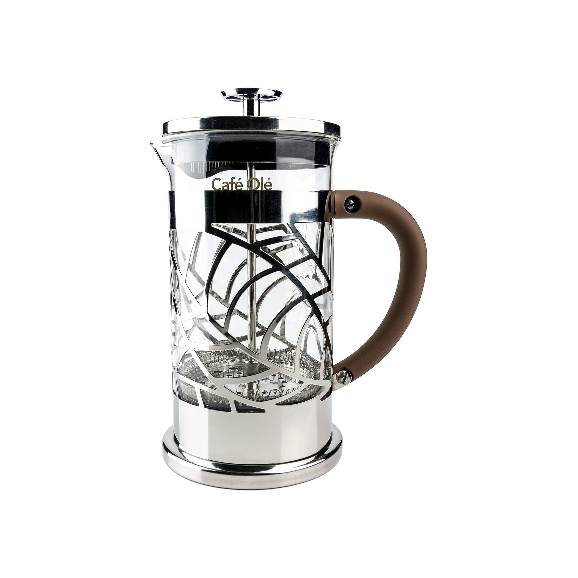 Details: The Café Olé Floral Cafetière range combines premium quality borosilicate glass with mirror polished 18/10 stainless steel, for a robust and intricately designed selection of cafetières which are a must-buy for any coffee lover!