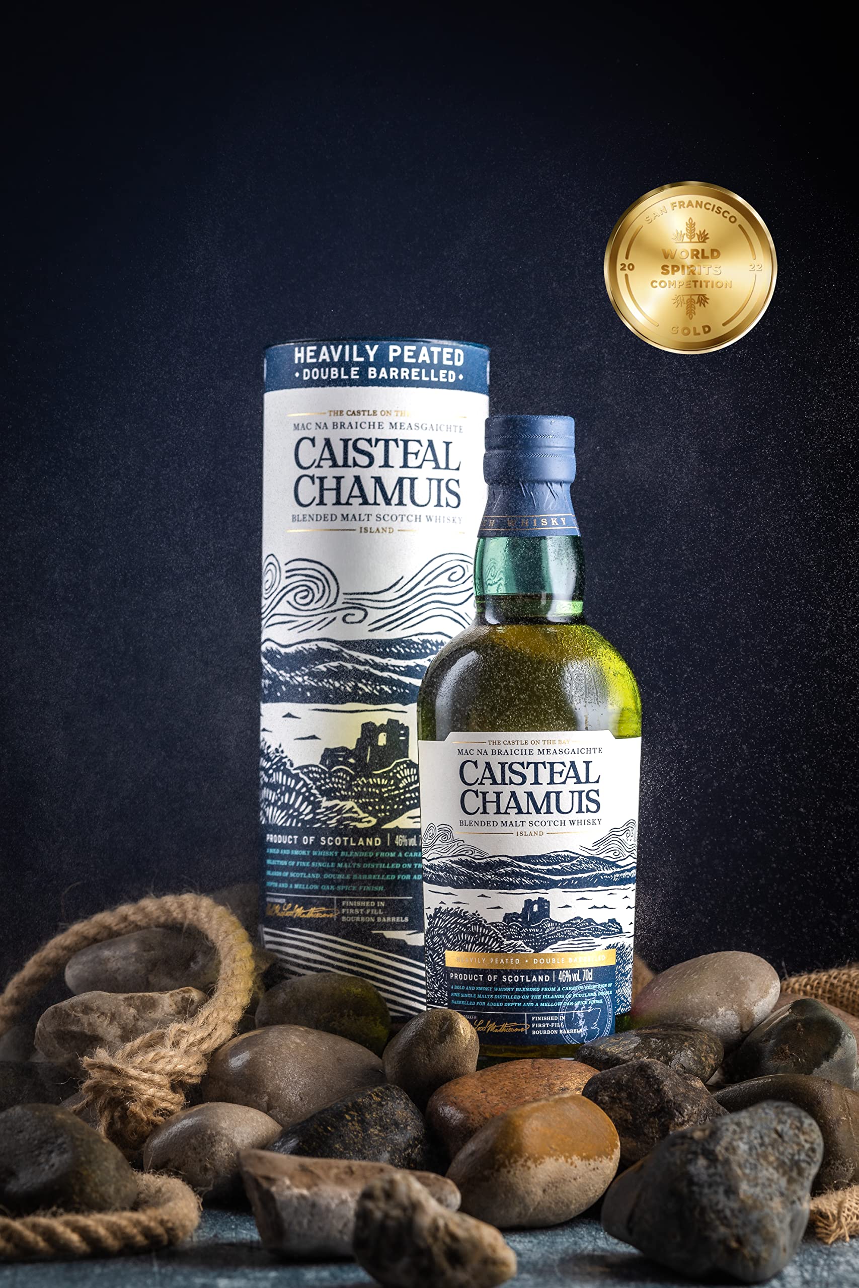 - Product 2: Named after the mysterious medieval ruin, Caisteal Chamuis (Gaelic pronunciation phonetically resembles Kash-teel Haam-oosh or for non-Gaelic speakers – Castle Camus), which lies on the headland of the eastern flank of Knock Bay, on the Isle of Skye.