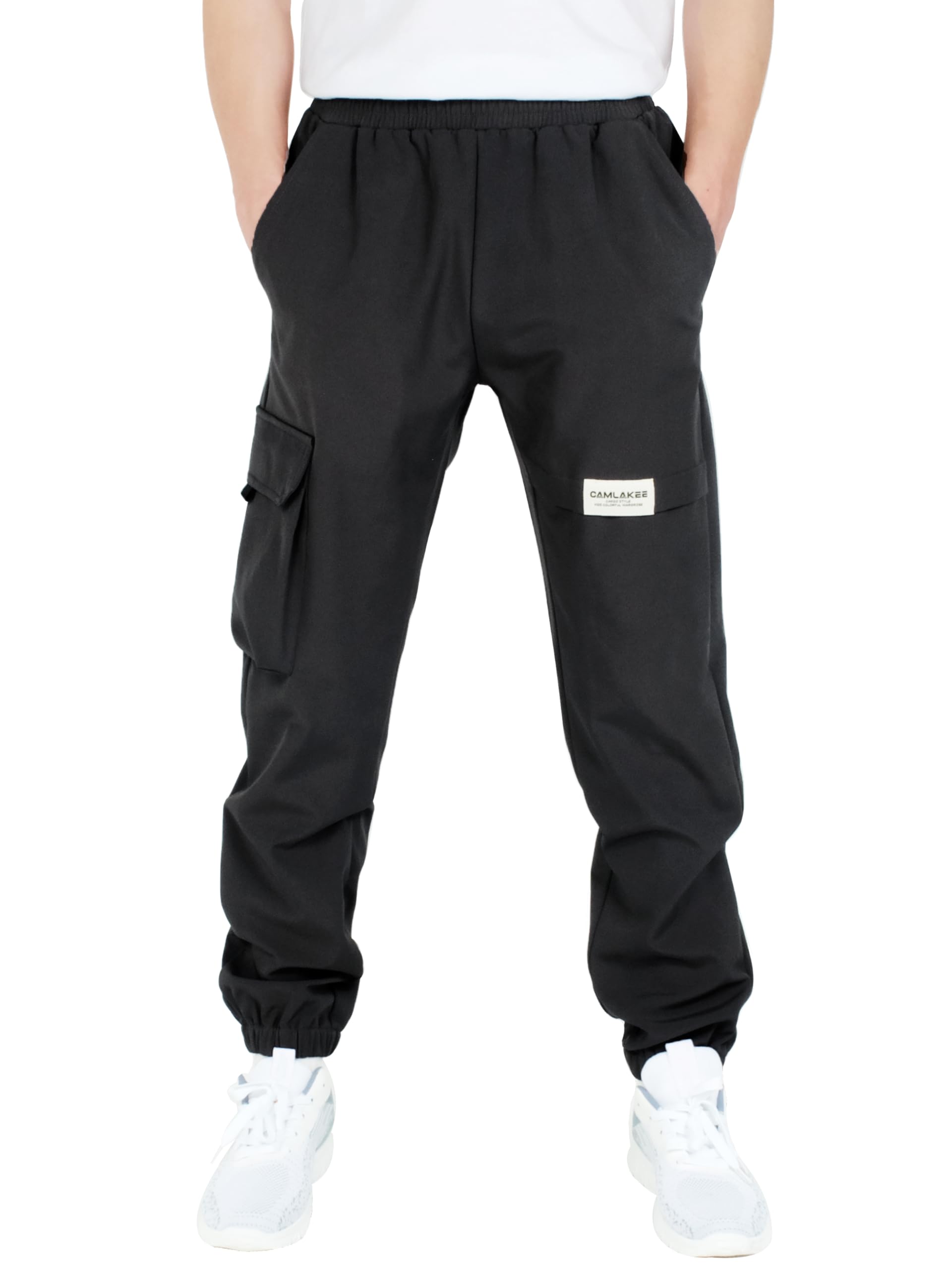 CAMLAKEE Kids Softhell Hiking Trousers Boys Waterproof Outdoor Cargo Pants Walking Jogging Bottoms with Elastic Waist Black UK:13-14 Years (manufacturers's size: 170)