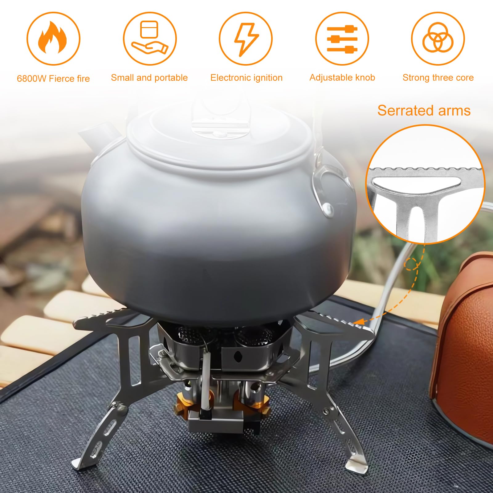 Camping Gas Stove, Portable Camping Stove Outdoor, 6800W Windproof Backpacking Gas Stove with Piezo Ignition, Foldable Camping Gas Burner for BBQ, Hiking, Camping, Trekking, Fishing, Picnic