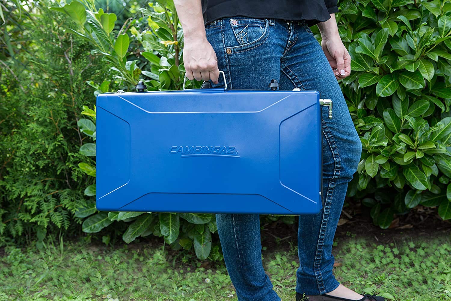 Campingaz Chef Folding Double Burner Stove and Grill, compact gas cooker for camping or festivals, Blue