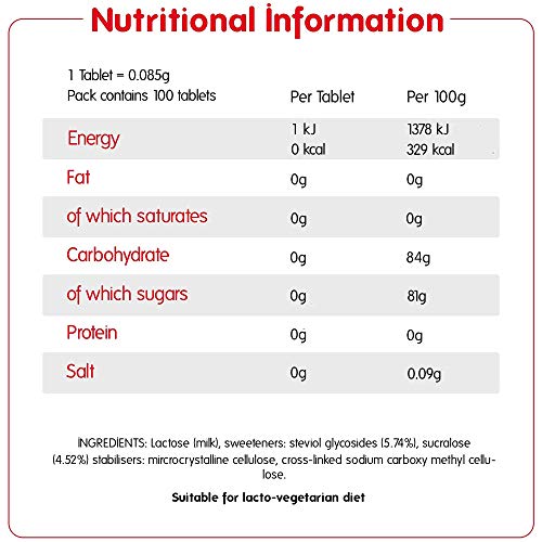 - LONG LASTING - Stock up on your favorite sweetener with this pack of 5, each containing 100 tablets. Perfect for keeping your cupboards well-stocked or for sharing with family and friends.