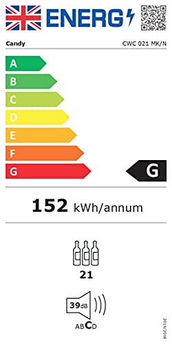 CANDY CWC021MKN Freestanding Wine Cooler, Single Zone Temperature, 85 liters, Black, Noise level: decibels 39