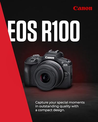 Canon EOS R100 - Compact Mirrorless Digital Camera - 24.1 MP, 4K Resolution - Dual Pixel CMOS AF, DIGIC 8 Processor - 6.5 FPS Continuous Shooting - Face & Eye Detection, Bluetooth, Wi-Fi, GPS