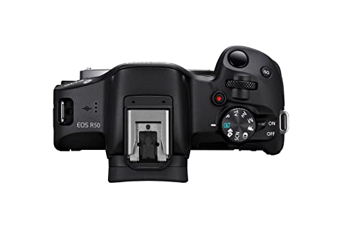 Canon EOS R50|24.2MP APS-C Mirrorless Camera|Body Only|Up to 15fps Cont.|Dual Pixel CMOS AF II|4K 30p Oversampled 6K|Vari-Angle Screen|Bluetooth & WiFi|Black