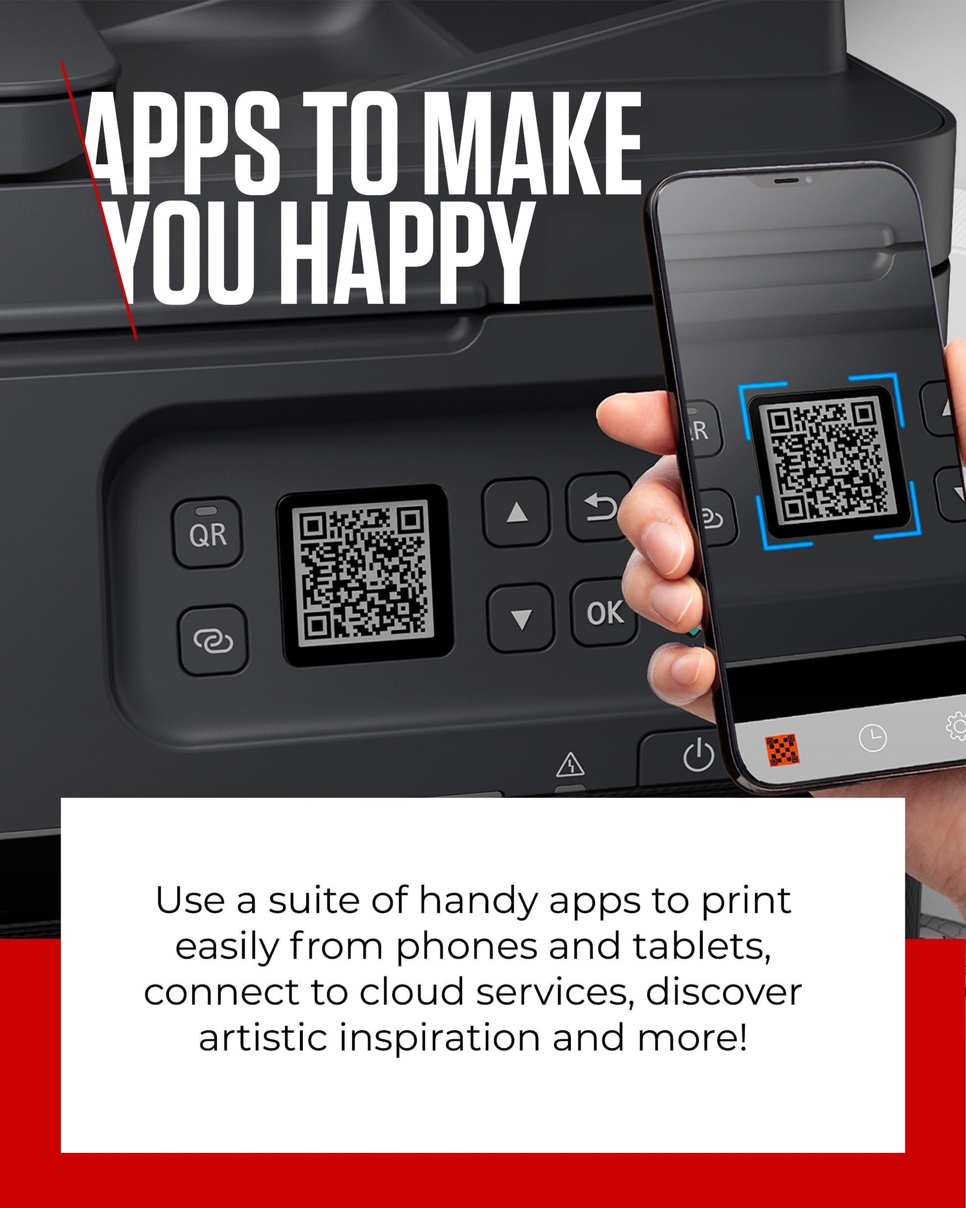 - APPS TO MAKE YOU HAPPY: Simplify your printing experience with a suite of convenient apps designed to make printing from your phone or tablet easier than ever; explore cloud services, find artistic inspiration, and more, directly from our apps.