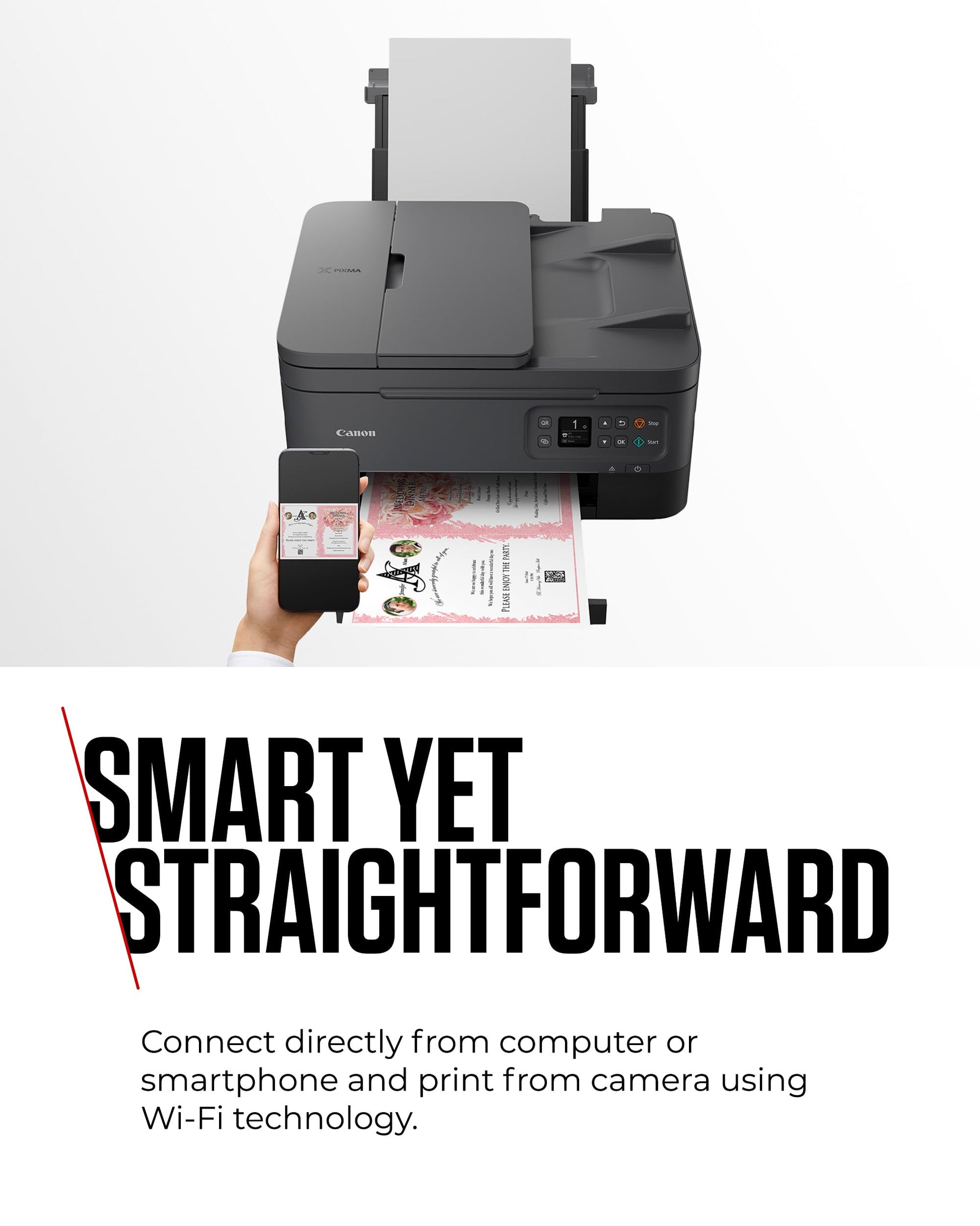 - SMART YET STRAIGHTFORWARD: Experience seamless connectivity with the ultimate user-friendly printer; effortlessly print from your computer, smartphone, or even your camera, thanks to its Wi-Fi technology.