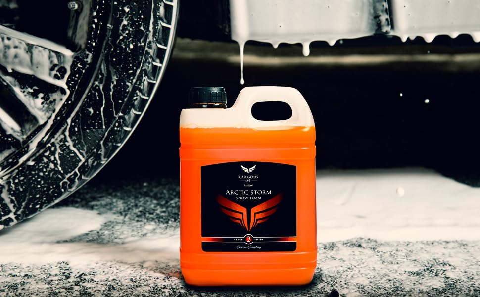 Car Gods Triton Arctic Storm Snow Foam. Summon the torrents of the seas with Triton to wash away stubborn dirt and grime with ease. Our specially formulated pH neutral Arctic Storm Snow Foam masks the whole car in a thick layer of foam that effectively loosens and removes surface contaminants and road grime whilst it’s seeping down the body. Perfect for use before contact washing. Does not strip waxes or sealants. Developed for use with a pressure washer.