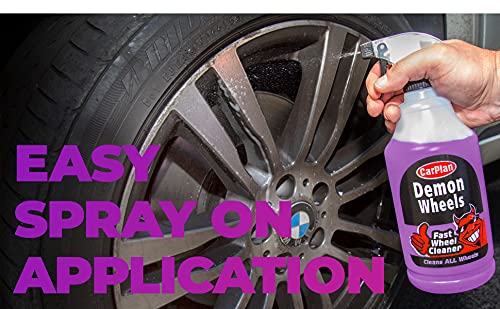 Details: Want the best showroom finish for your car in a fraction of the timeLet the Demon do the work. CarPlan Demon Wheels active formula removes baked on brake dust, road grime and oil quickly. A universal wheel cleaner suitable for use on all wheels including chrome, plastic, alloys and split rims. TRY IT... YOU'LL LOVE IT!