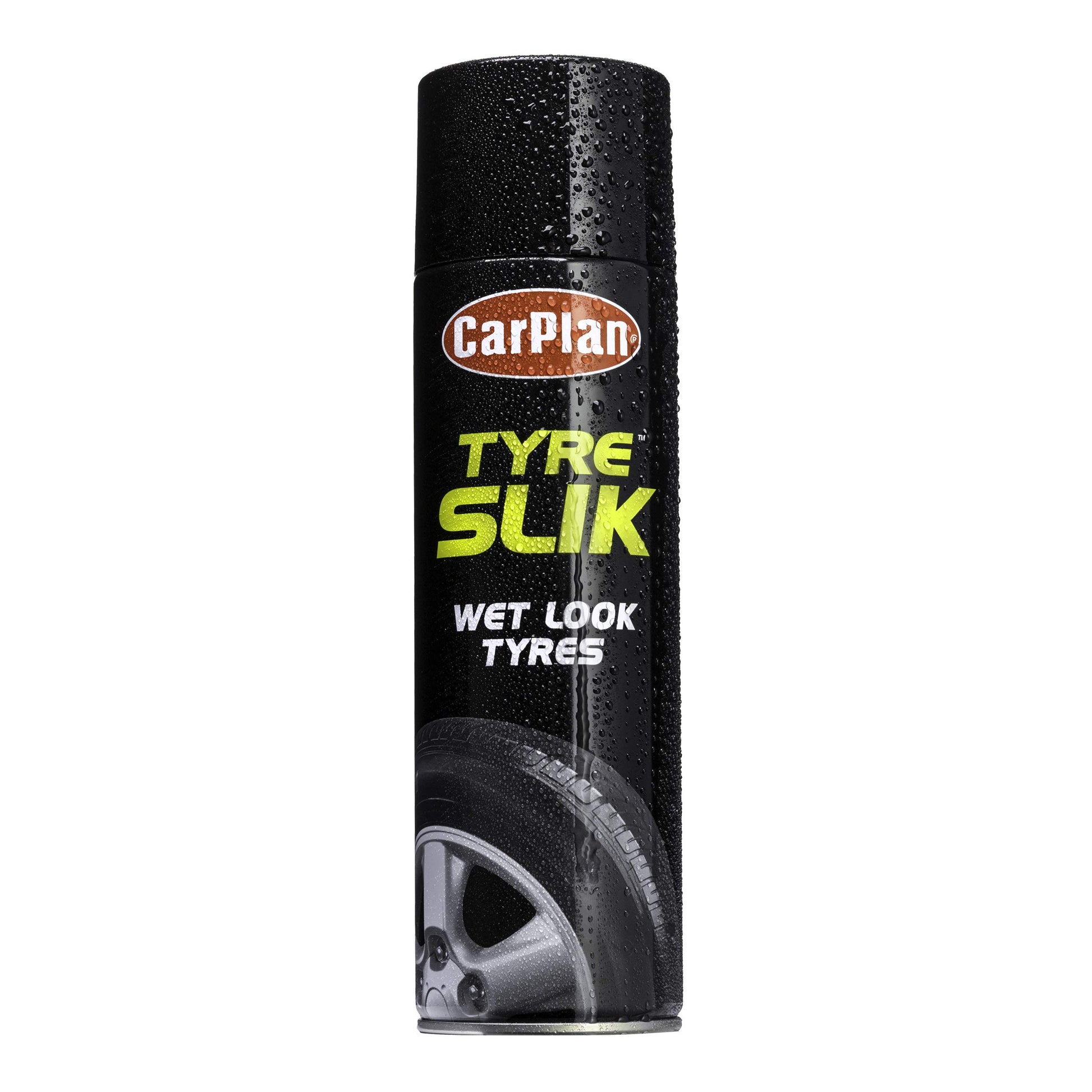 Details: carplan tyre slik has won multiple awards from AUTO Express and continues it's reign as the leading "wet look tyres" Product. tyre slik constrains a special lubricant to help combat the effects of crazing on tyre walls - use regularly to reduce the effects of ageing. simply spray on to clean tyres for instantly glossy black tyres that lasts for weeks - guarenteed!