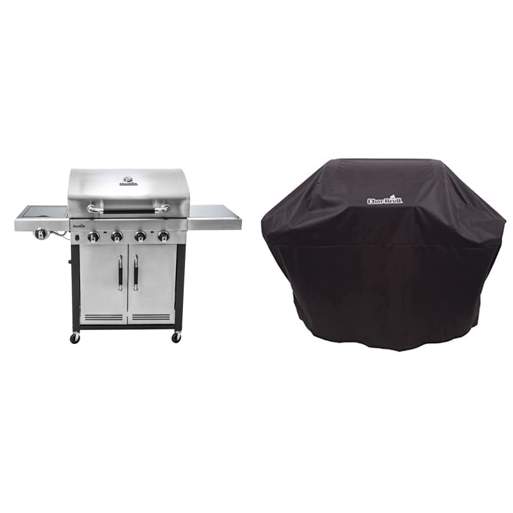 Char-Broil 140895 Advantage Series 445S - 4 Burner Gas Barbecue Grill with TRU-Infrared Technology, Stainless Steel Finish & 140 766 - Universal 3-4 Burner Gas Barbecue Grill Cover, Black.