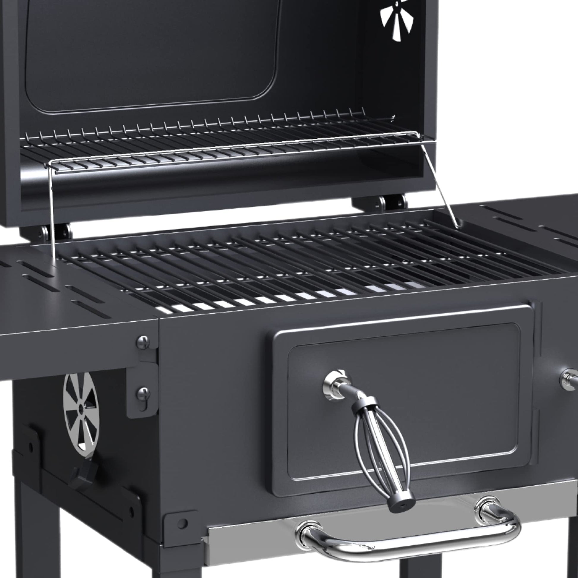 Made with ease of use in mind, this kentucky smoker charcoal bbq is designed with a front accessible door for when you need to adjust or refill the charcoal. Whilst the front crank allows you to adjust the height of the grill, providing you with more control of your cooking. The higher the grill the lower the heat, the lower the grill is the higher the heat.