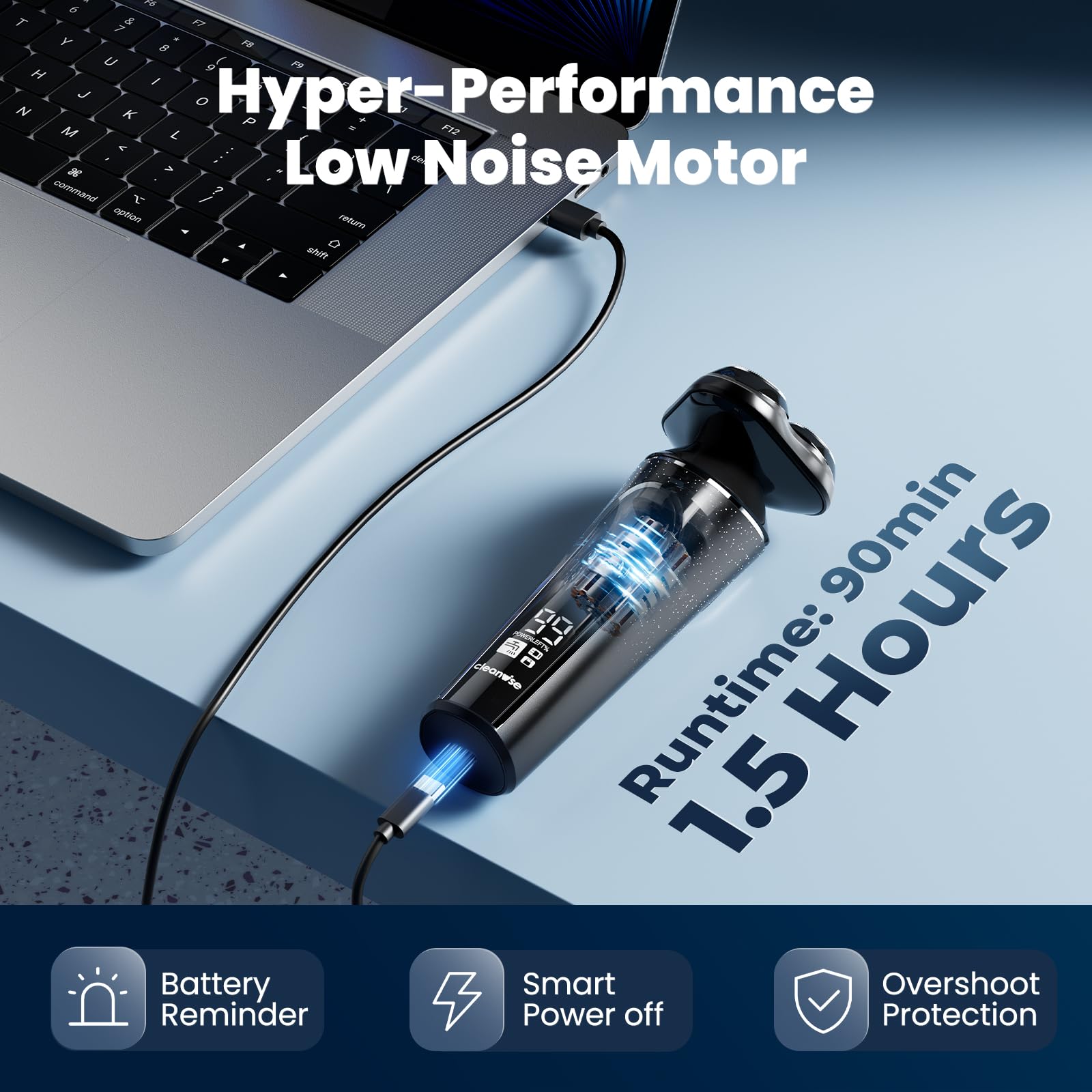 1.5H Shaving Time & USB-C Charging: Enjoy up to 90 minutes of shaving with a convenient USB-C charging port. Charge and use the razor simultaneously, ensuring a worry-free experience even when you're on the go.