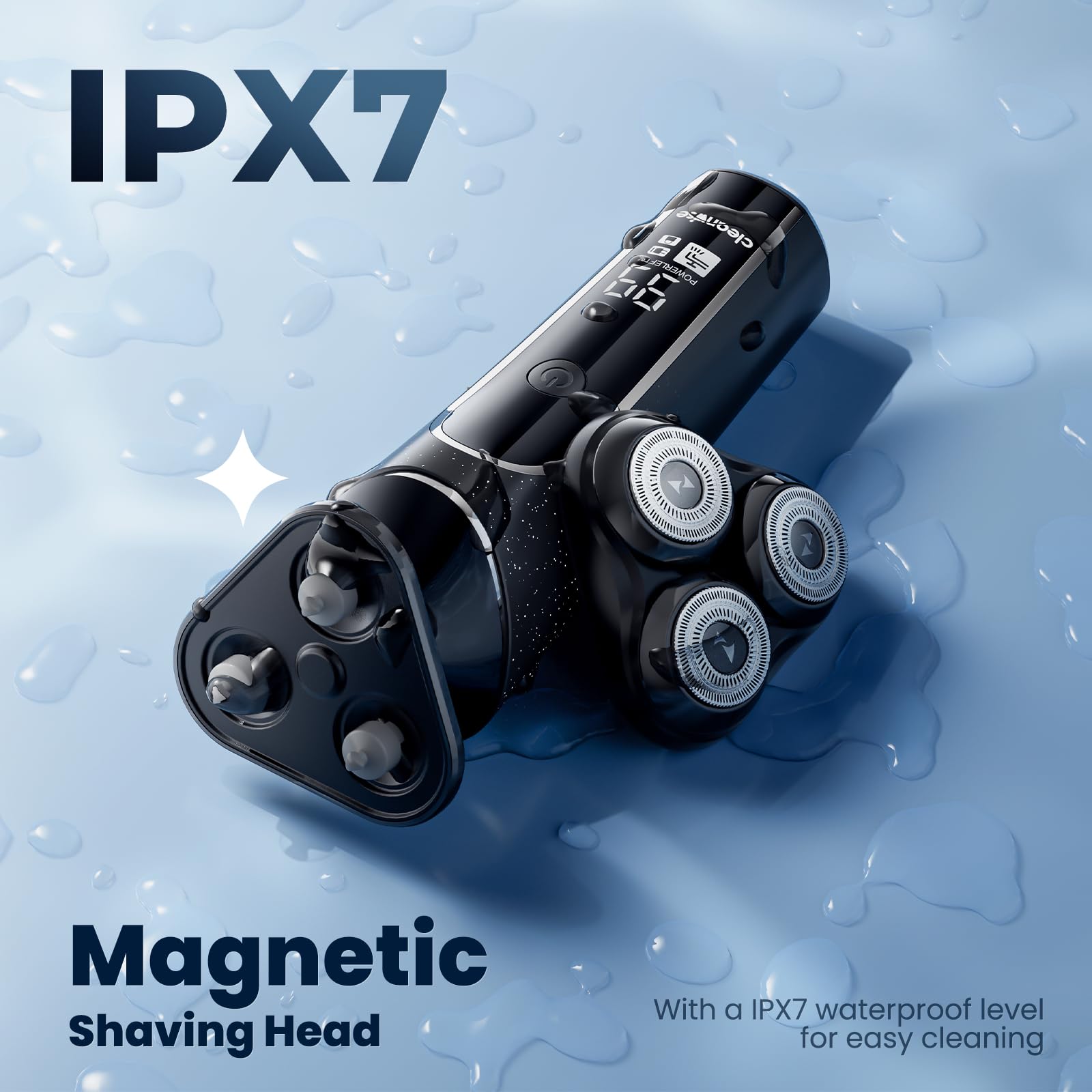 IPX7 Waterproof, Wet & Dry Use: Whether you’re shaving dry for convenience or wet for a more comfortable experience, the Cleanwise Electric Razor handles it all. Its IPX7 waterproof design lets you use it in the shower without worry.