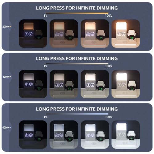 - 🌈 【Personalized Alarm Clock】The COLSUR 3 in 1 charging station features a customizable LED display with adjustable brightness levels of 0-10%-30%-50%-100%💡, providing clear visibility. Equipped with smart chips and built-in battery memory function, you won't miss any alarm. Simple and convenient alarm clock setting program allows you to set alarms worry-free.