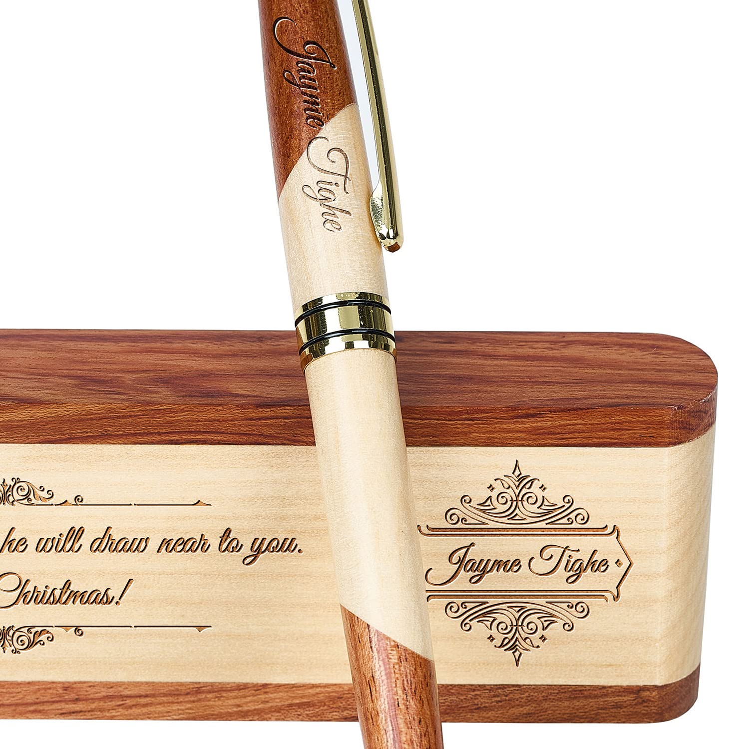 ★ Free personalization on this elegant maple and rosewood boxed wooden pen set, Add custom engraving to both the box and pen.