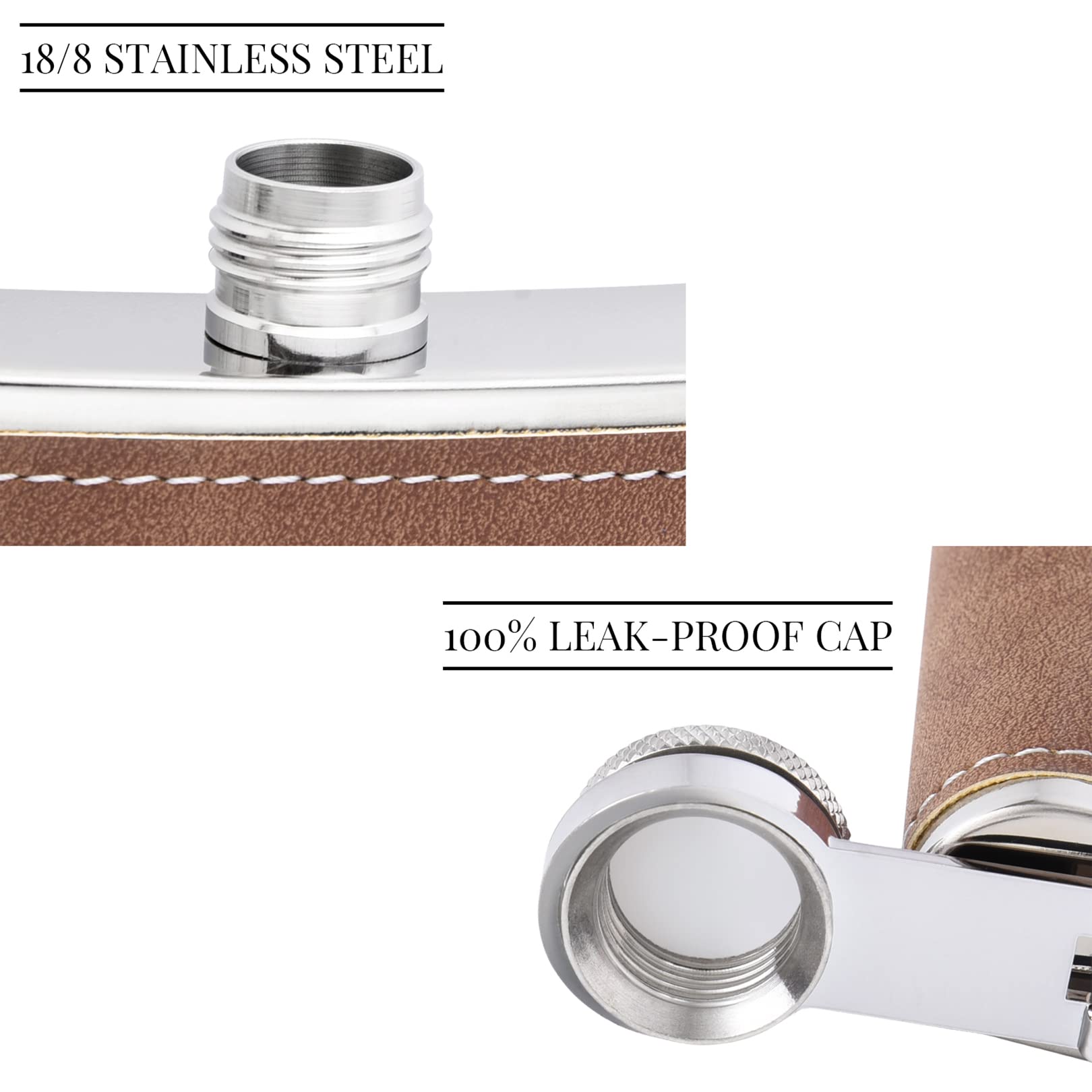 - Material: 304 Stainless Steel, PU Leather